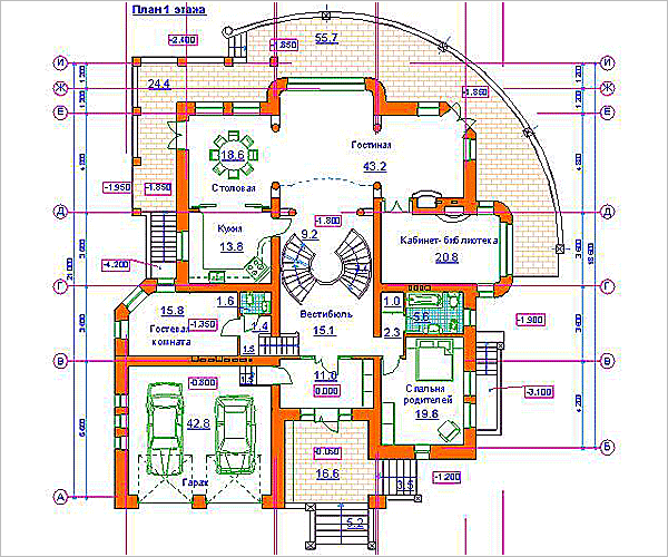 Разделы проекта: АР(архитектурный раздел),КР(конструктивный раздел)