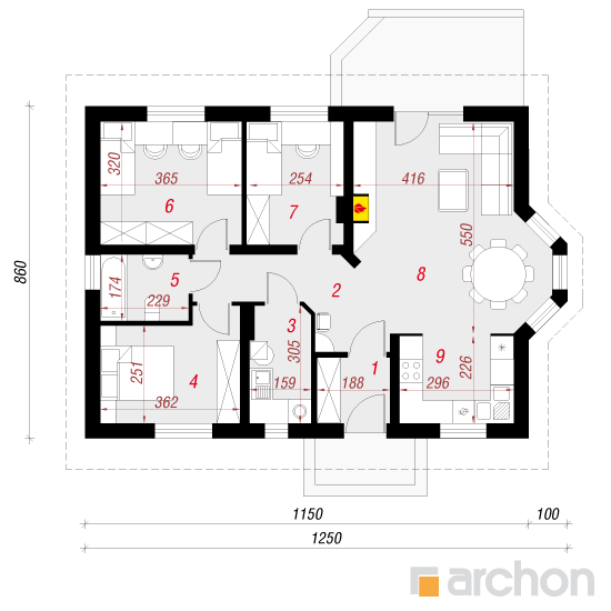 | Габариты дома: | 12.50 x 8.60 м |