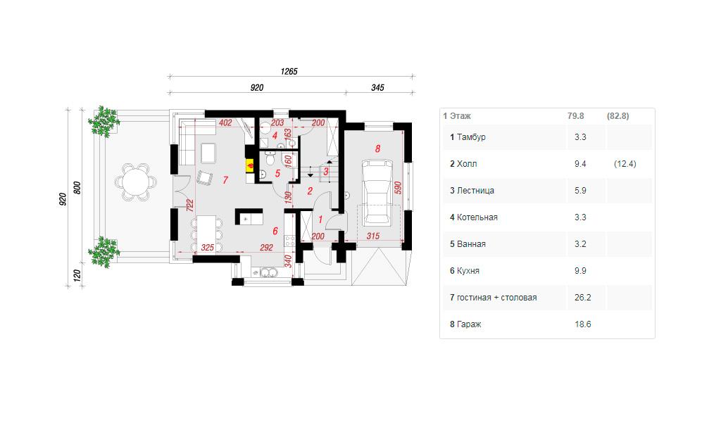 | Фасад: | штукатурка, клинкерная плитка, деревянная облицовка |