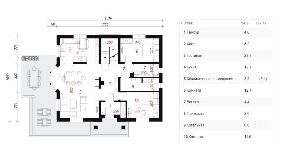 | Материал стен: | керамический пустотелый блок Porotherm 25 см (или газобетон), утеплитель-пенопласт 20 см |