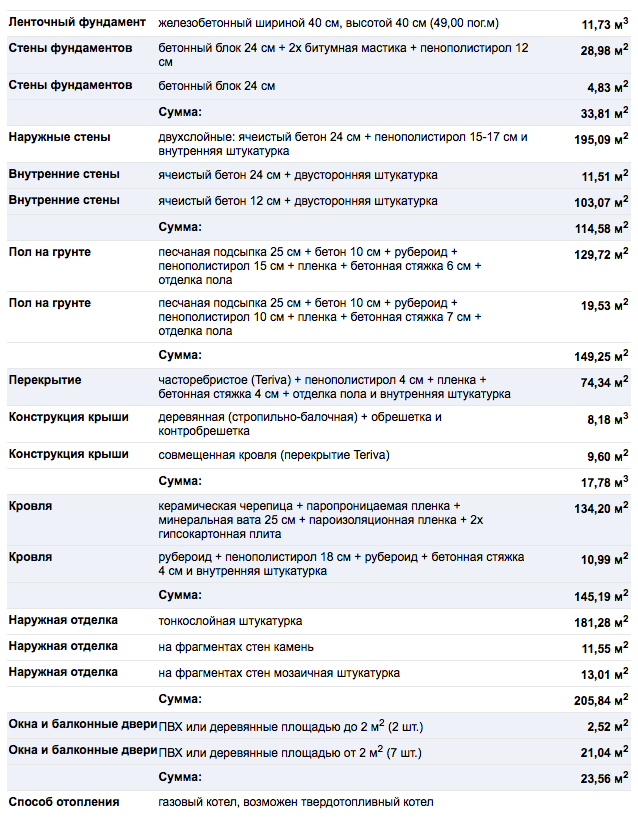 | Фундамент: | ленточный, ширина 400 мм, высота 400 мм с бетонными блоками 240 мм |