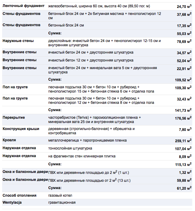 | Фундамент: | ленточный, ширина 600 мм, высота 400 мм с бетонными блоками 240 мм |