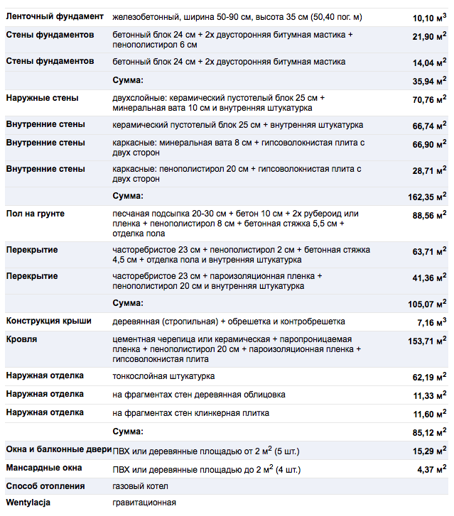 | Фундамент: | ленточный, ширина 500-900 мм, высота 350 мм с бетонными блоками 240 мм |