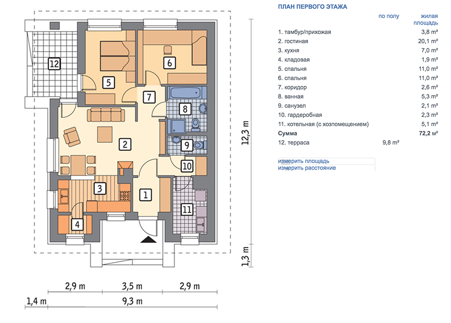 | Габариты дома: | 9.30 x 12.30 м |