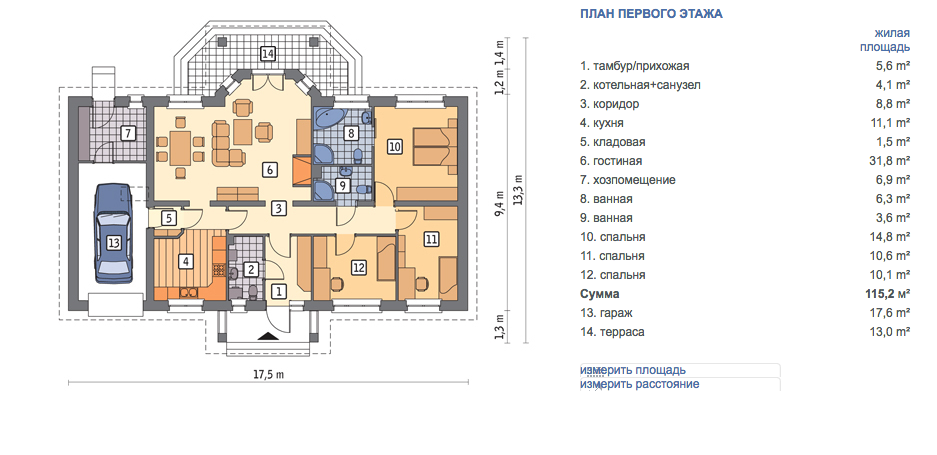| Габариты дома: | 17.50 x 13.30 м |