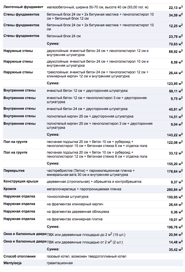 | Фундамент: | ленточный, ширина 50-70 см, высота 40 см + бетонный блок 24 см |