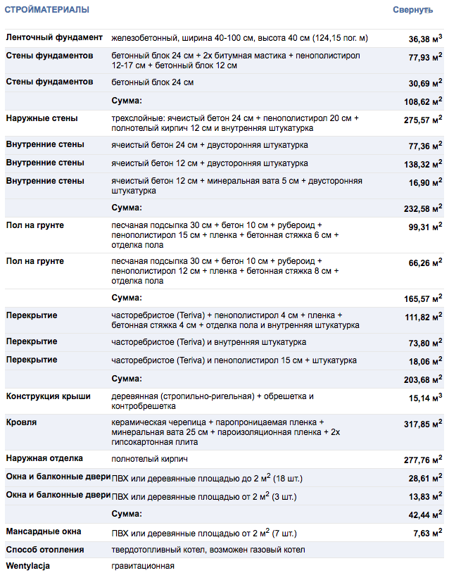 | Материал стен: | трехслойные: ячеистый бетон 24 cм + пенополистирол 20 cм + полнотелый кирпич 12 cм |