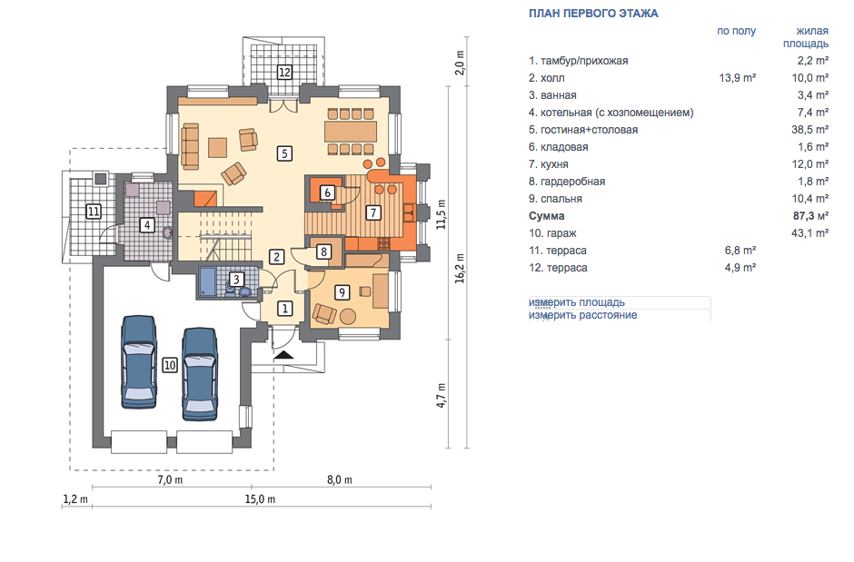 | Материал стен: | трехслойные: ячеистый бетон 24 см + пенополистирол 12 см + клинкерный кирпич 12 см |