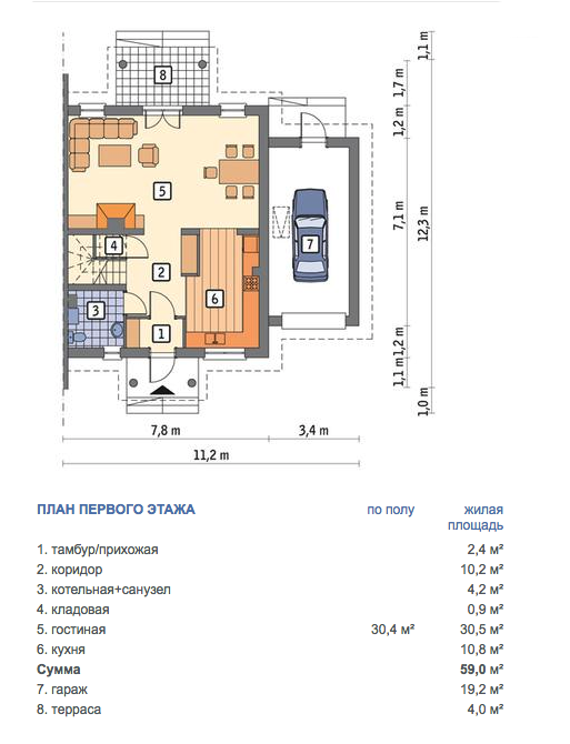 | Материал стен: | газобетон 240 мм или керамоблок 380 мм или керамзитобетон 365 мм |