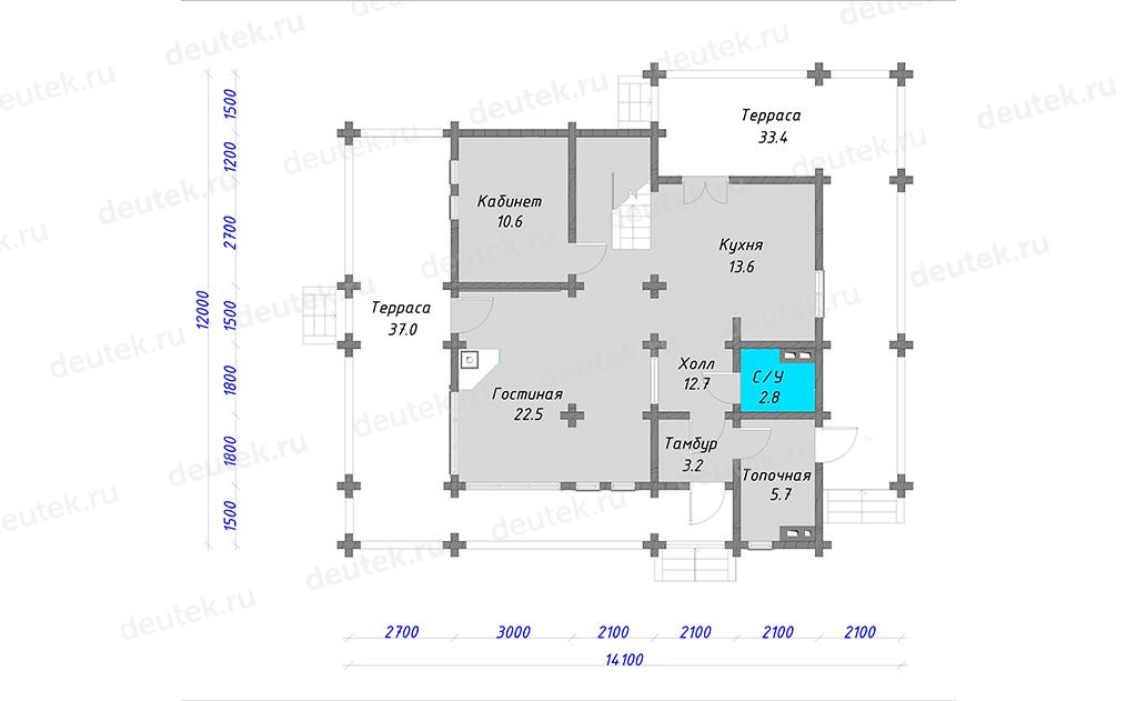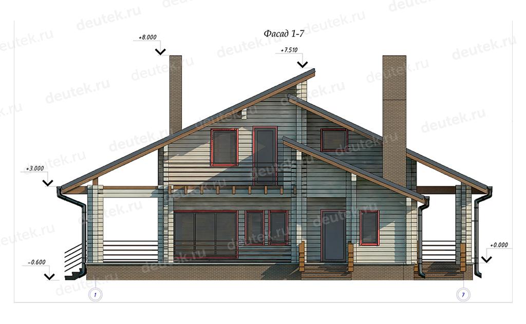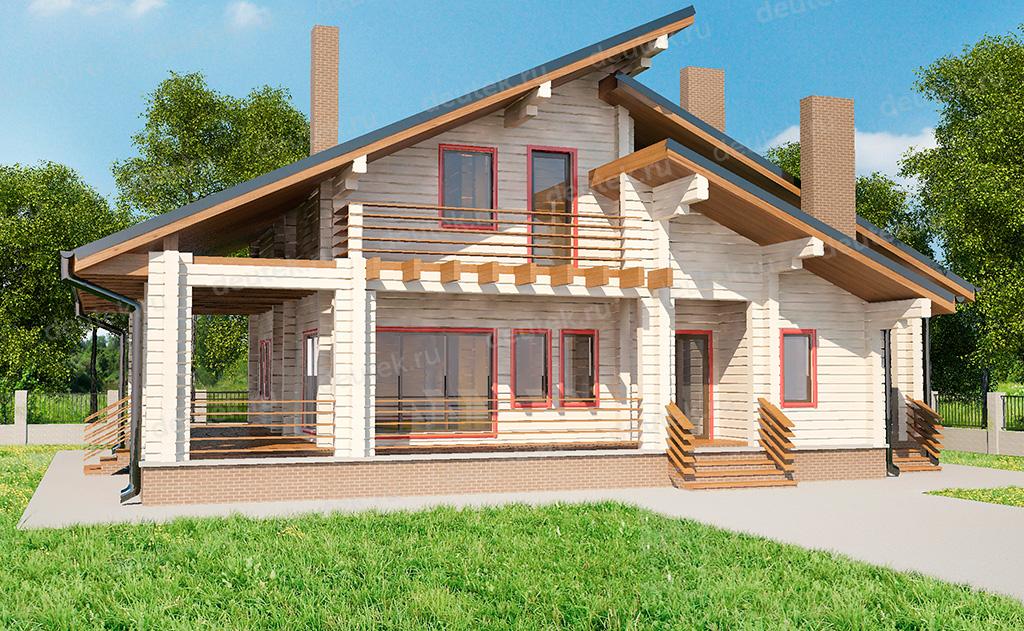 Проект деревянного дома с большой террасой DTW0004