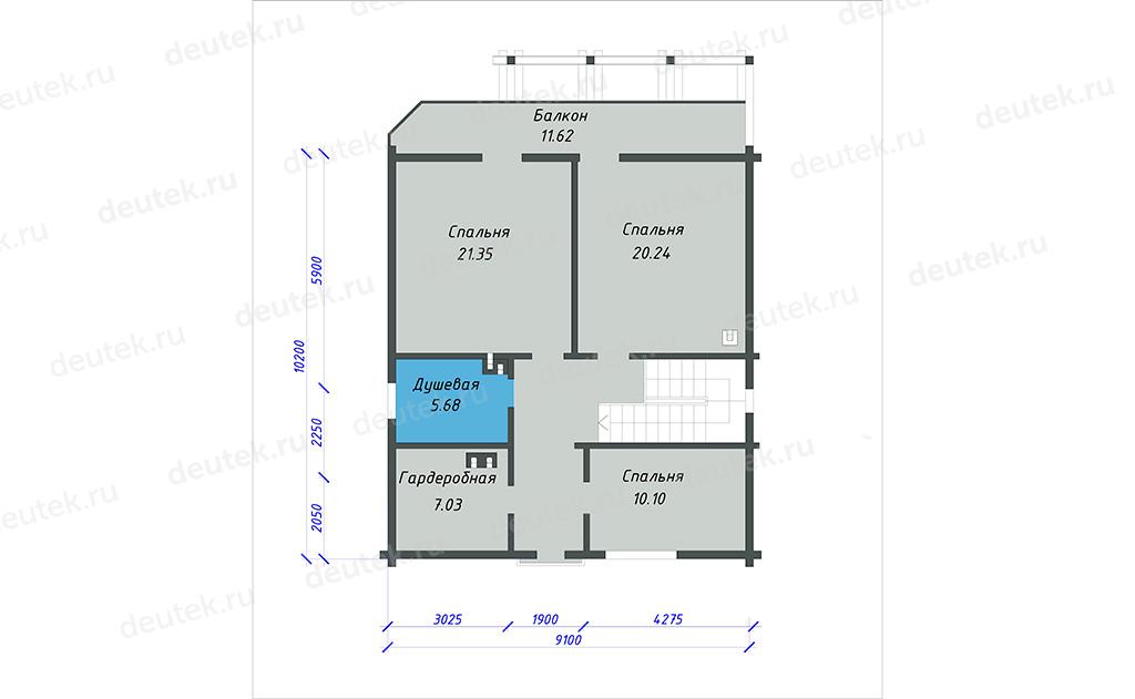 Габариты дома: 9.10 x 10.20 м