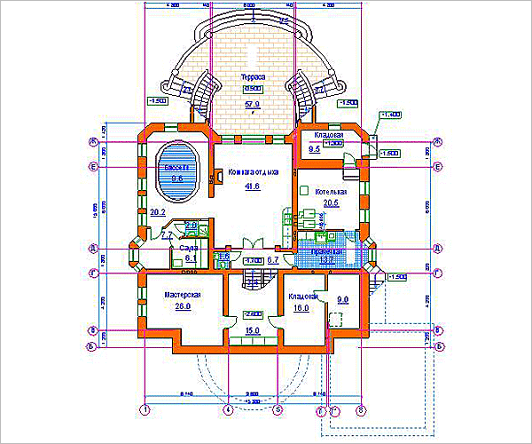 Большая часть наших проектов содержит монолитную плиту, которая является универсальным фундаментом и подходит под большинство типов грунта. Буронабивные сваи с монолитной лентой ростверка являются самым доступным решением, но чтобы реализовать это решение необходимо предоставить отчет геологии, который вы можете заказать у нас или в любой другой компании. Данный тип фундамента иногда не может быть применен к слишком большим и тяжелым домам. Экономия, по сравнению с плитой, достигает до 40%.