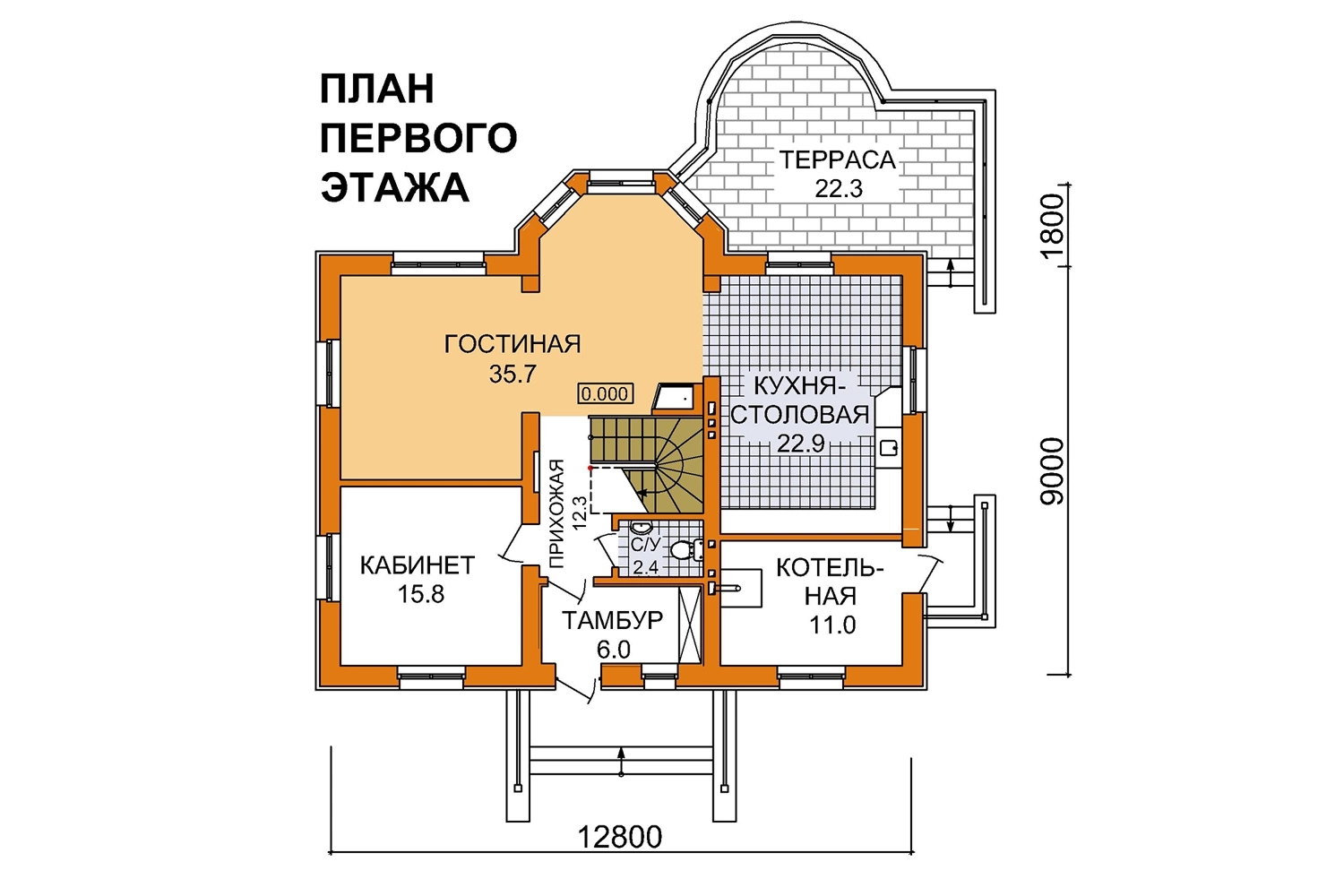 | Фасад: | облицовочный кирпич, натуральный камень |