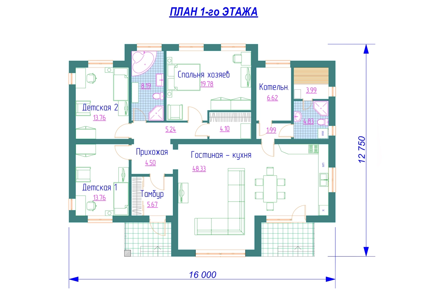 | Габариты дома: | 16.00 x 12.80 м |