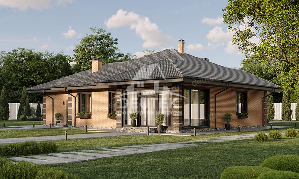 Проект одноэтажного дома с одноместным гаражом и верандой - LK-217