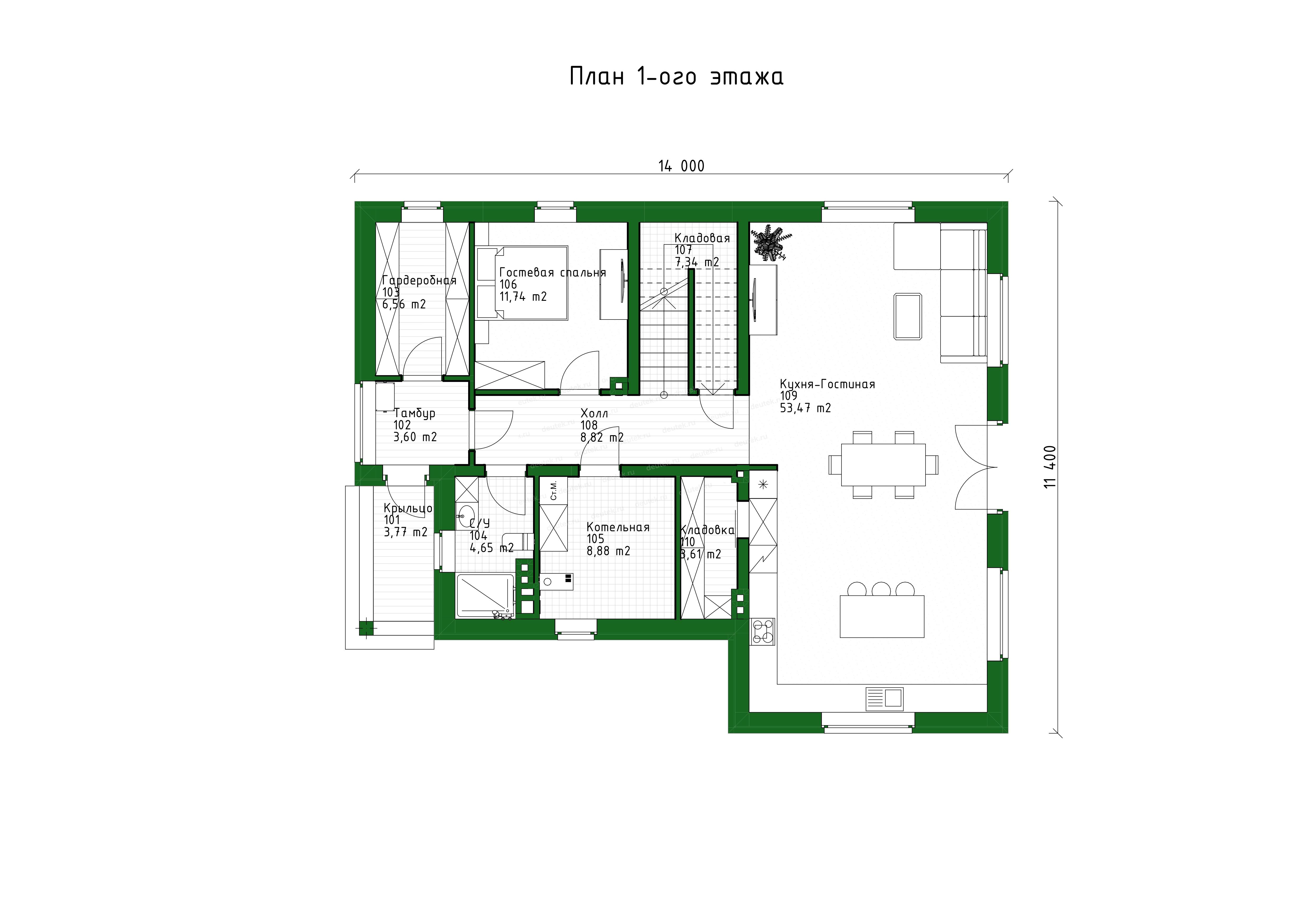 | Фасад: | облицовочный кирпич, цоколь - штукатурка |