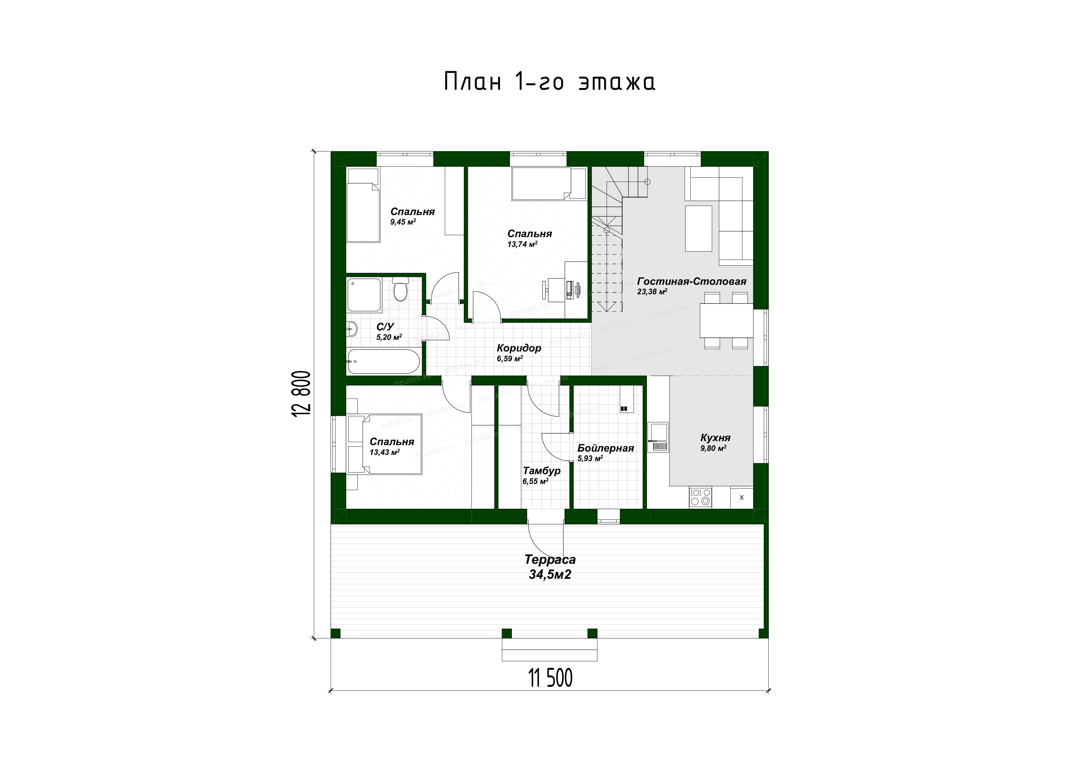 | Фасад: | фасадная штукатурка, декоративные вставки клинкерной плиткой; цоколь: клинкерная плитка |
