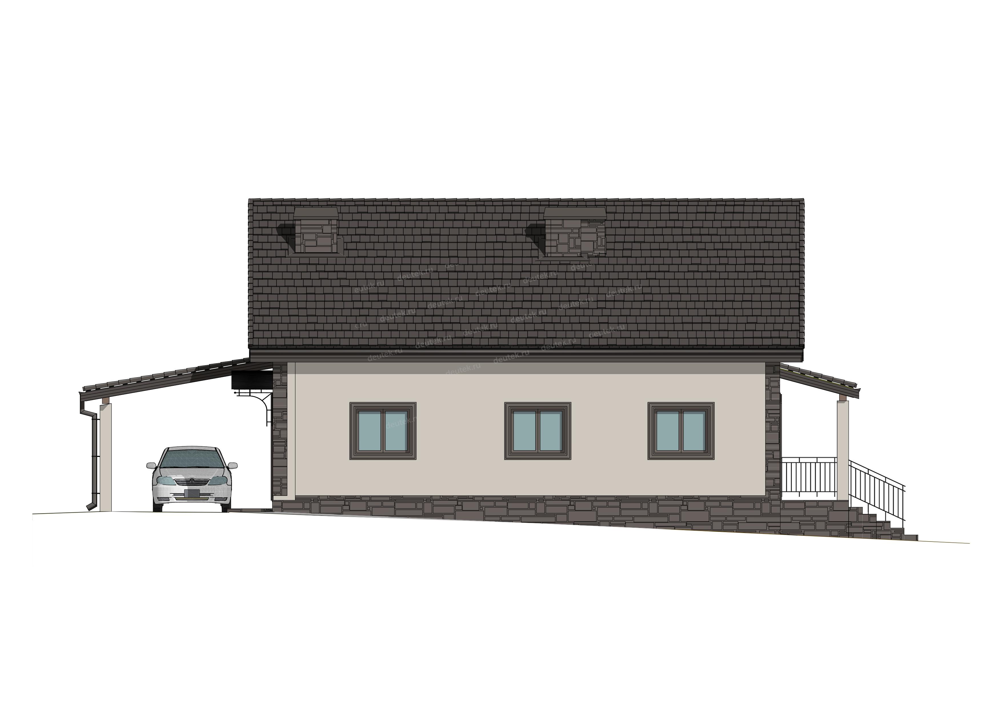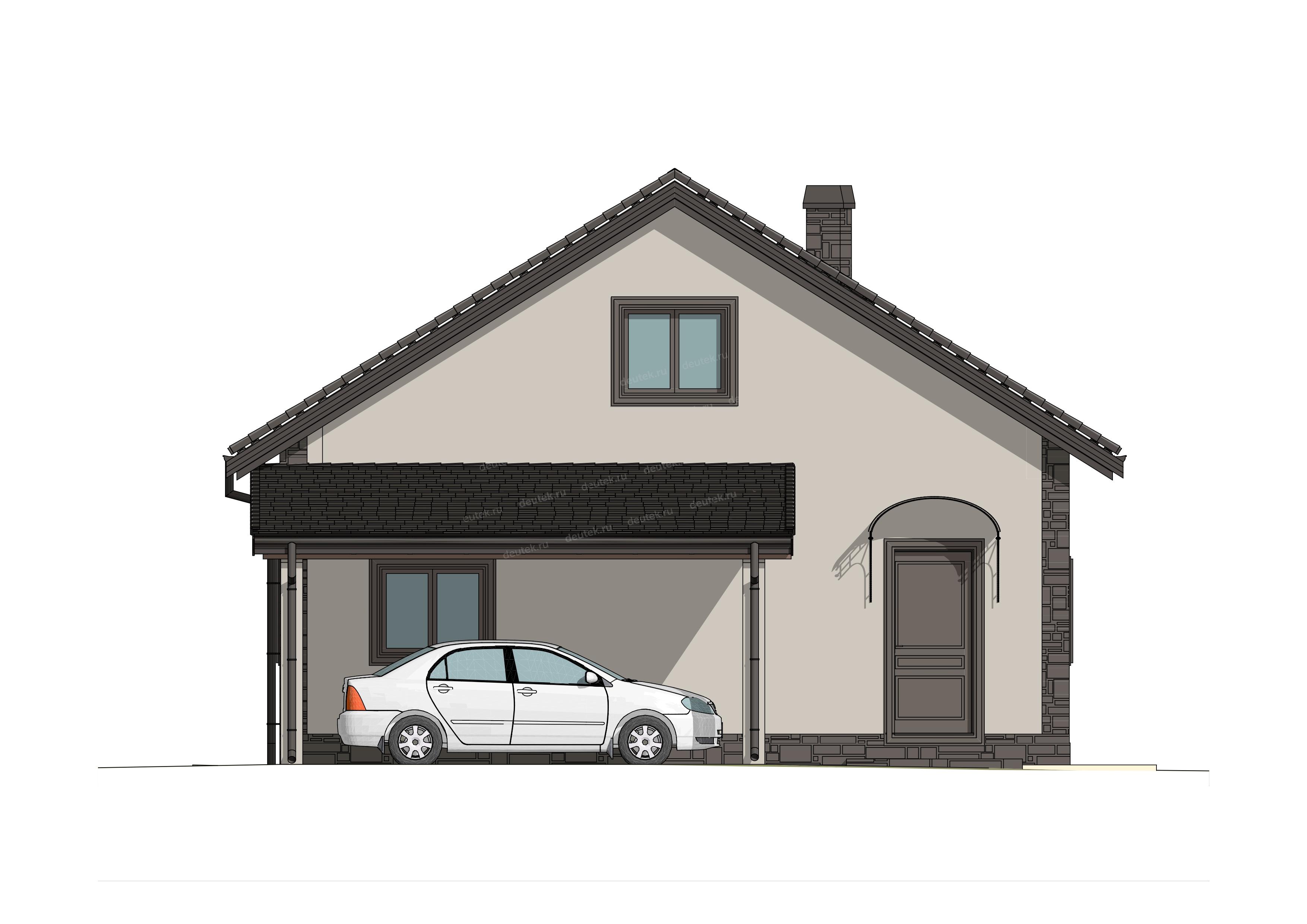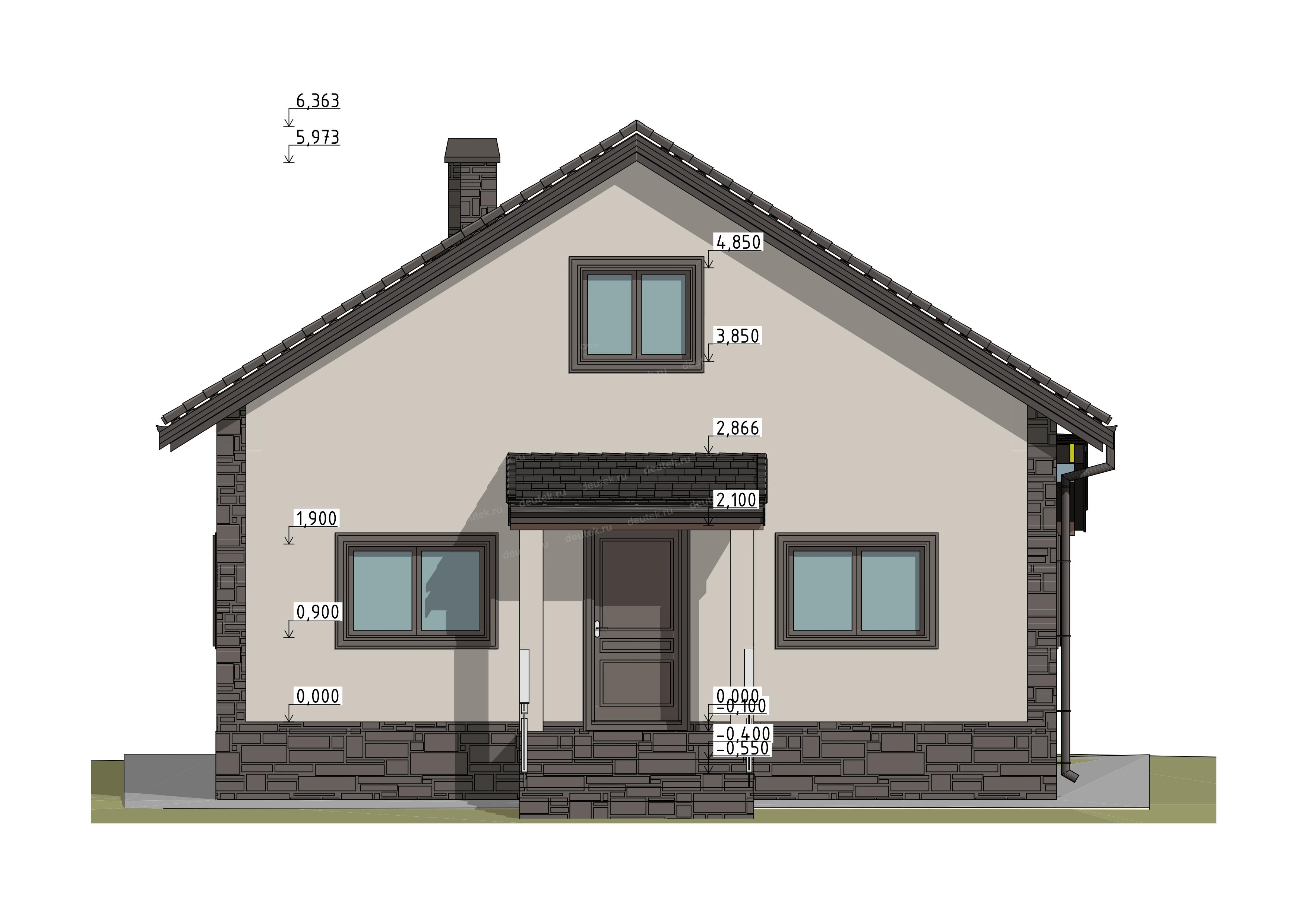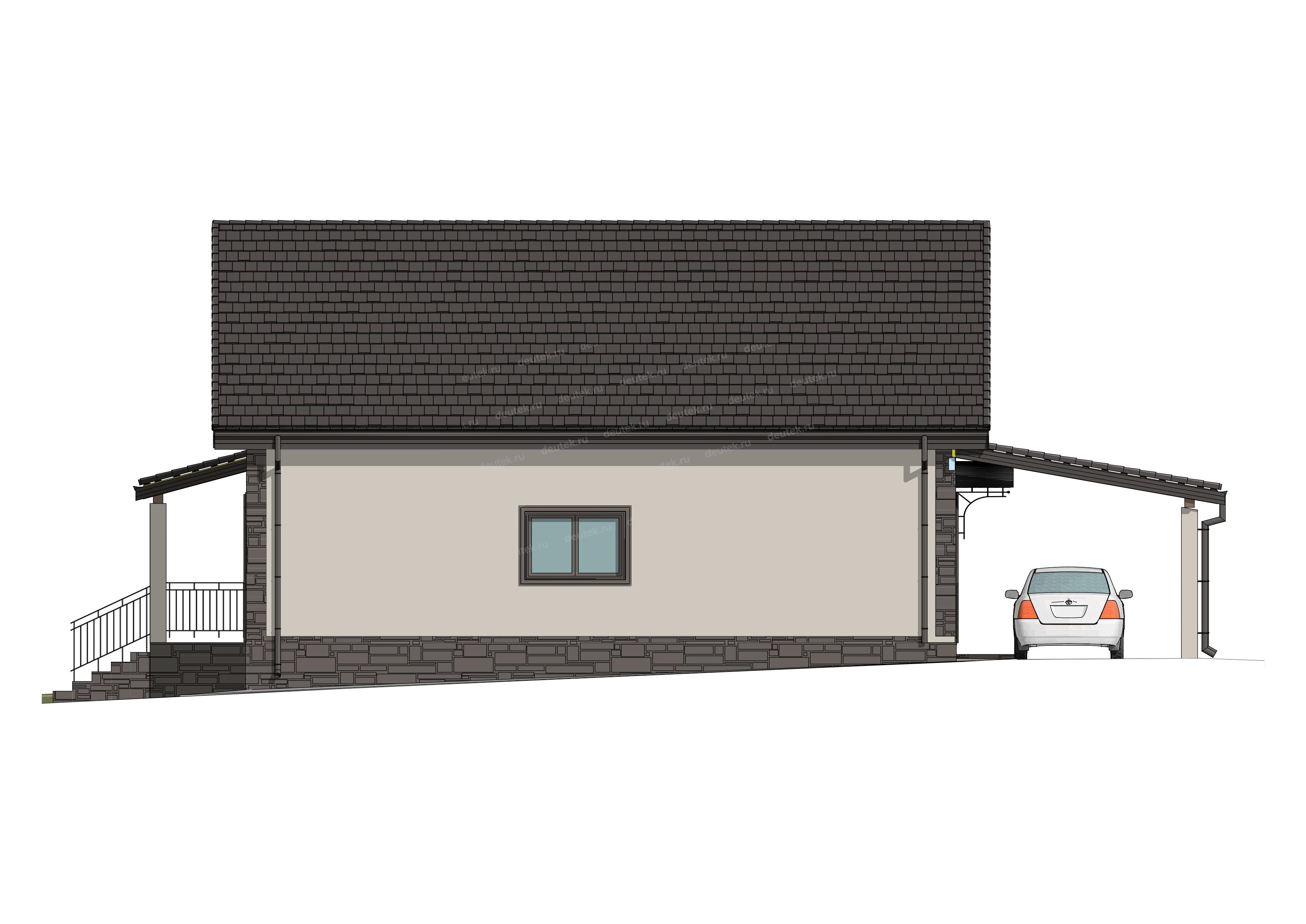 | Фасад: | фасадная штукатурка с обрамлением окон и углов рустами; цоколь: декоративный камень |