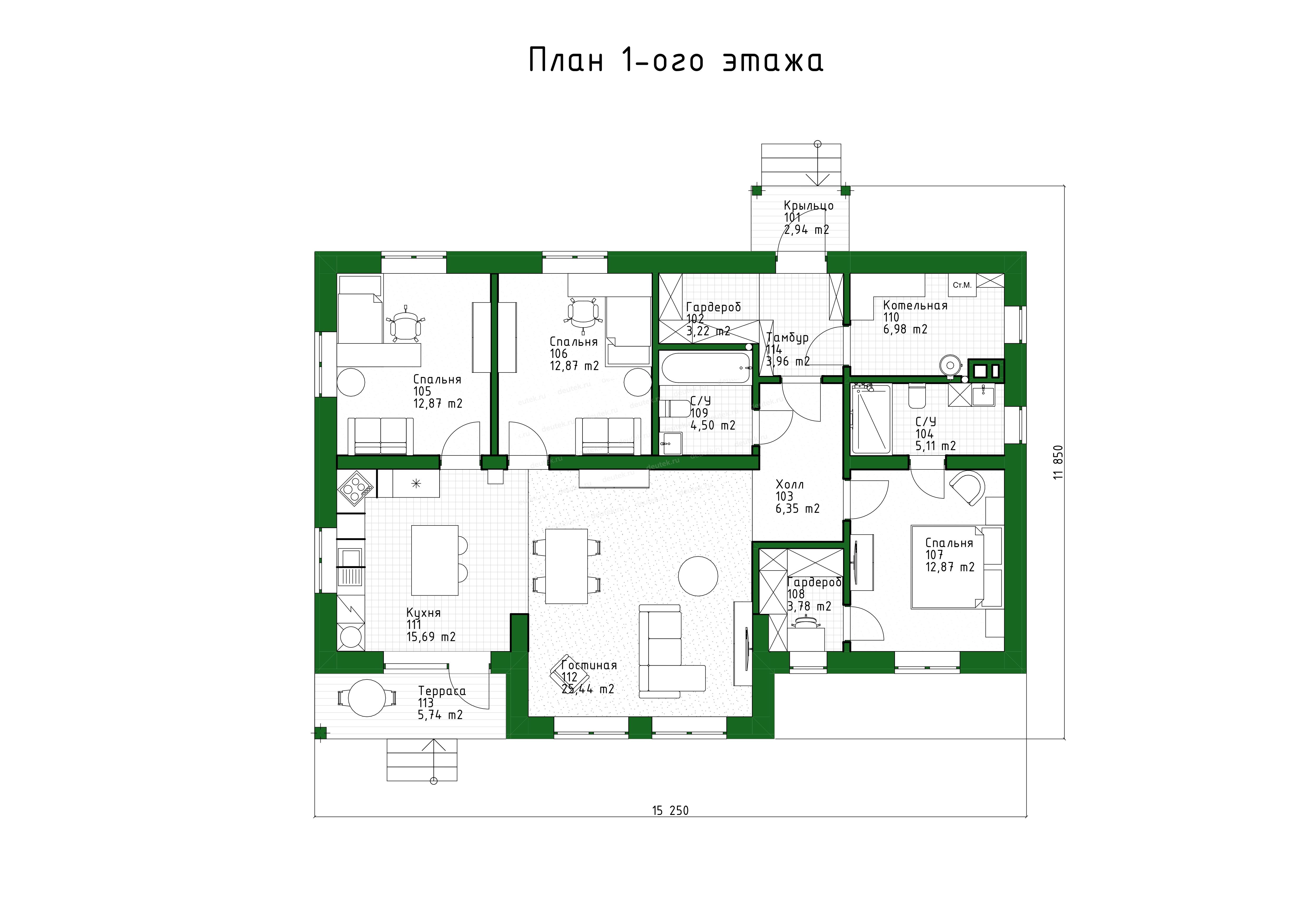 | Фундамент: | монолитная фундаментная плита – 300 мм |