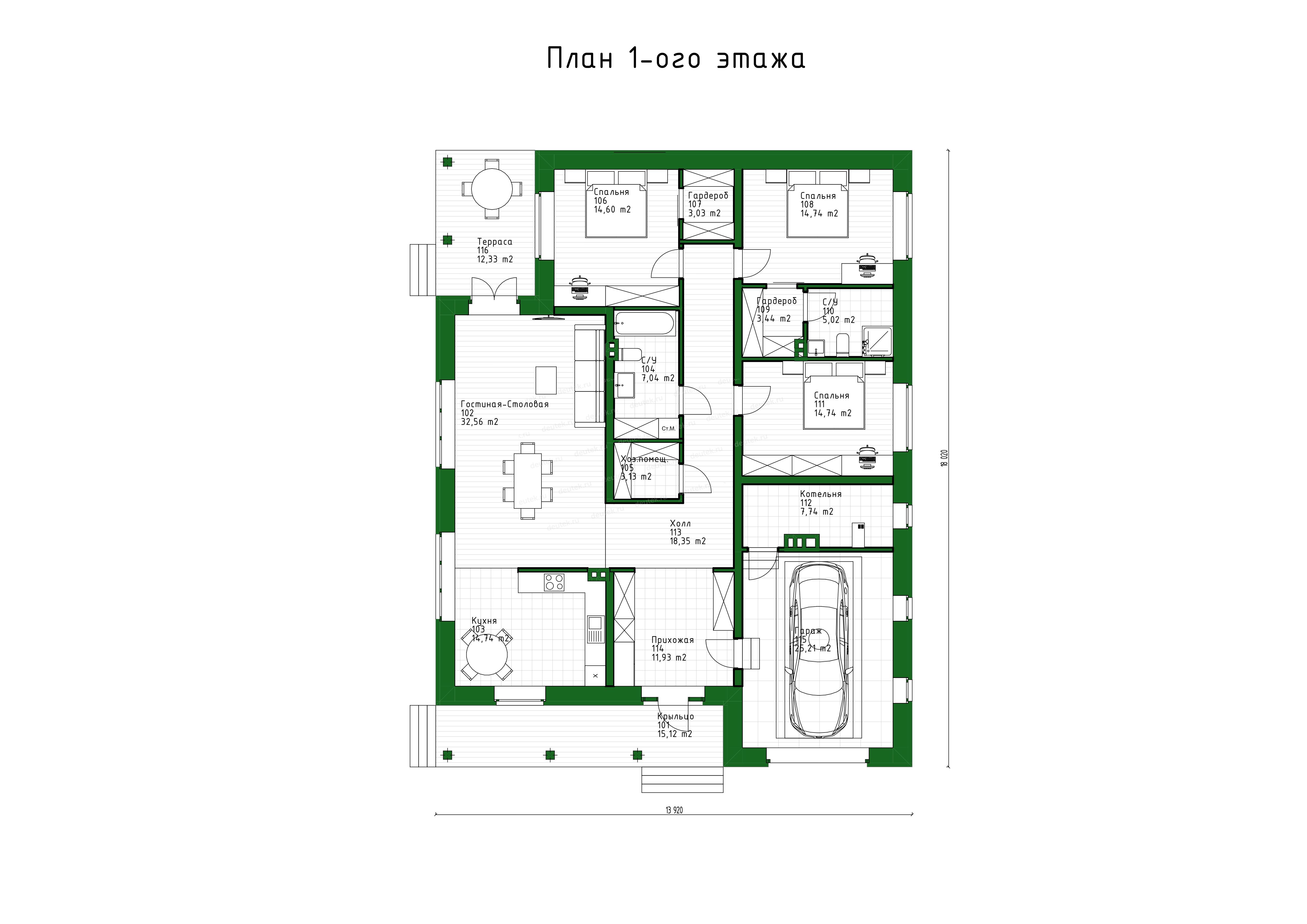 | Фасад: | облицовочный кирпич, цоколь - клинкерная плитка |