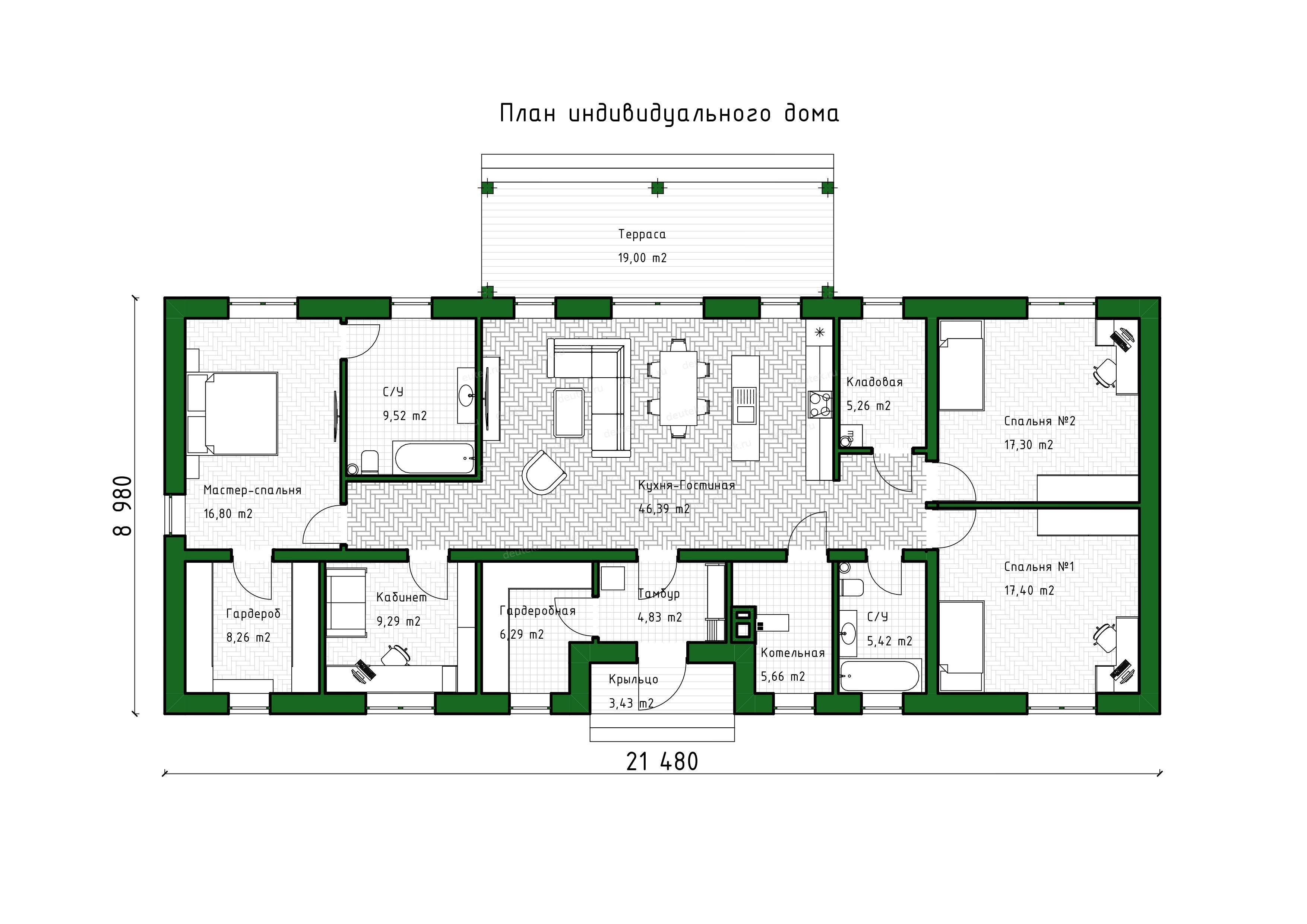 | Фундамент: | монолитная ж/б плита - 300 мм с ростверком |