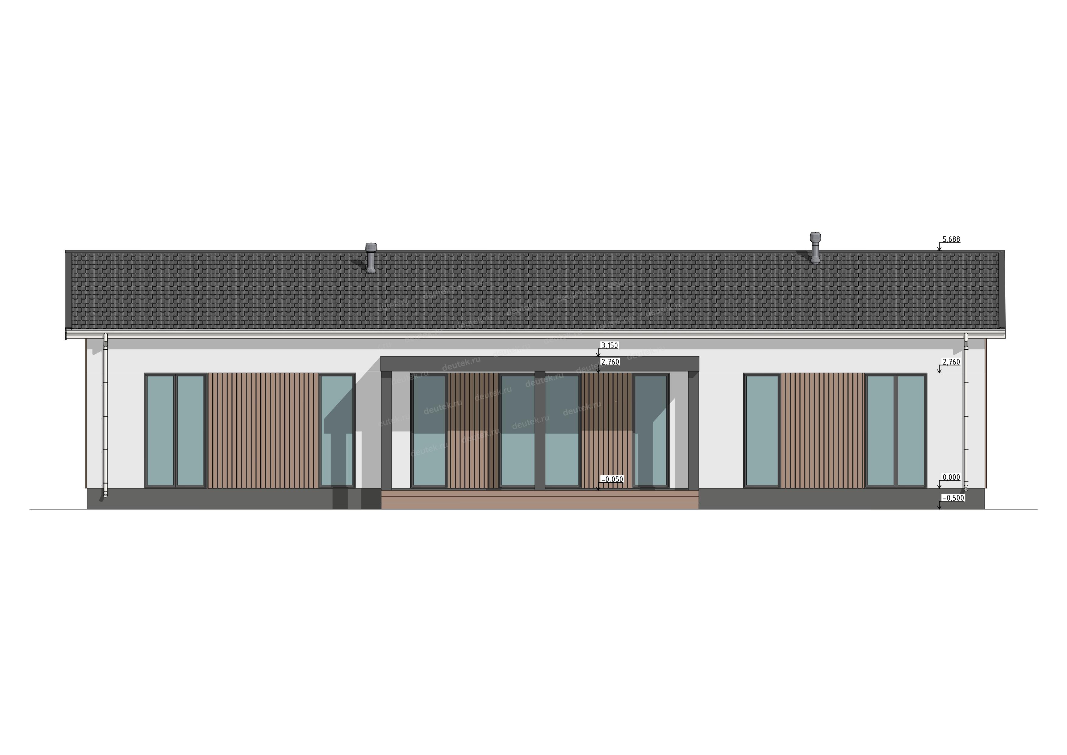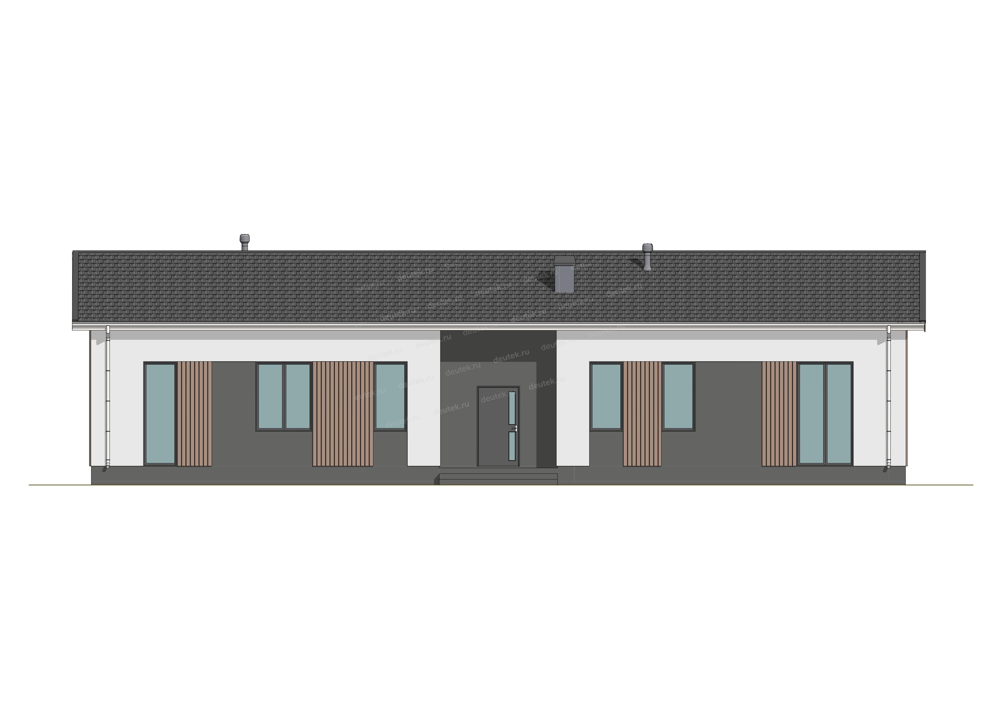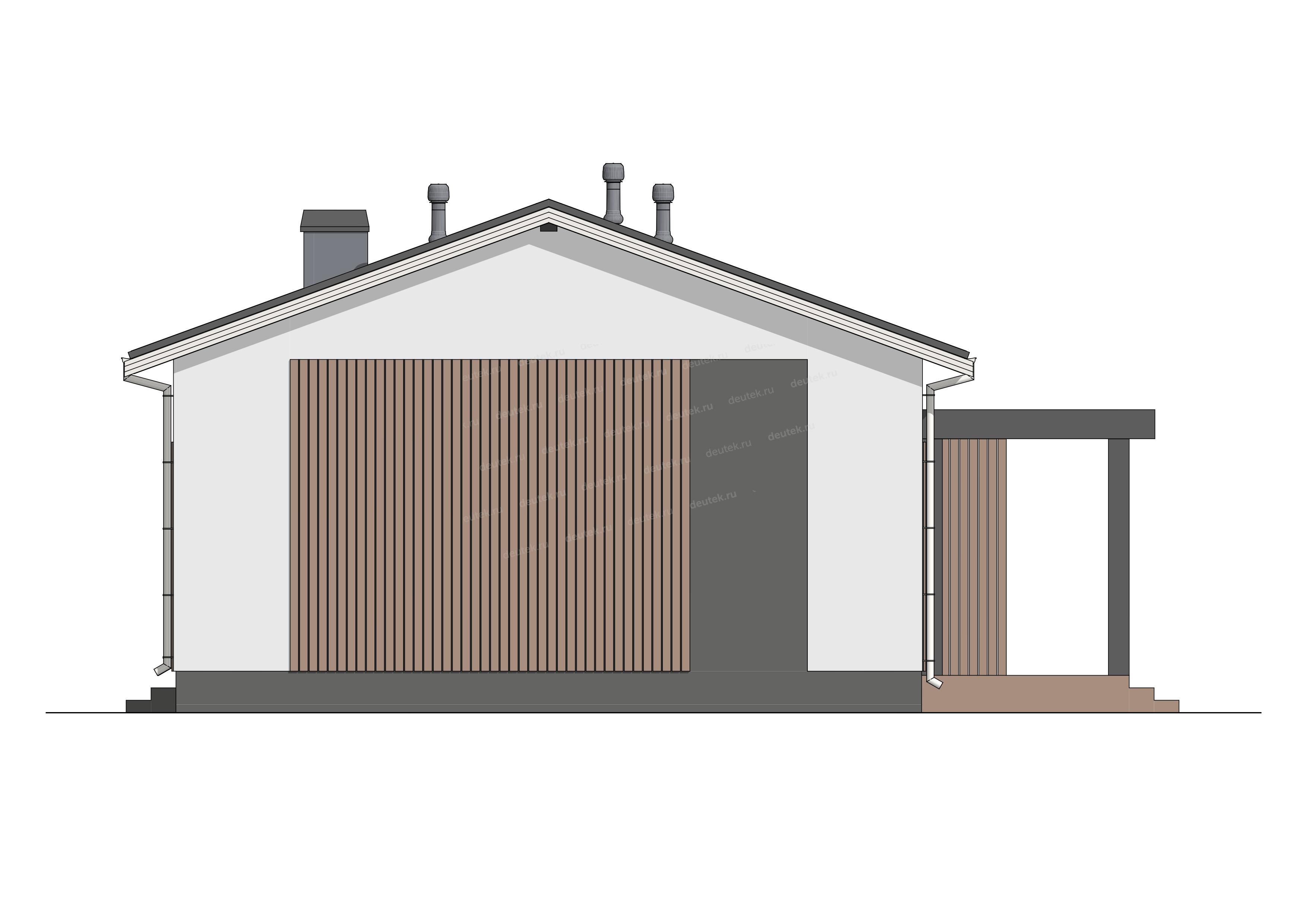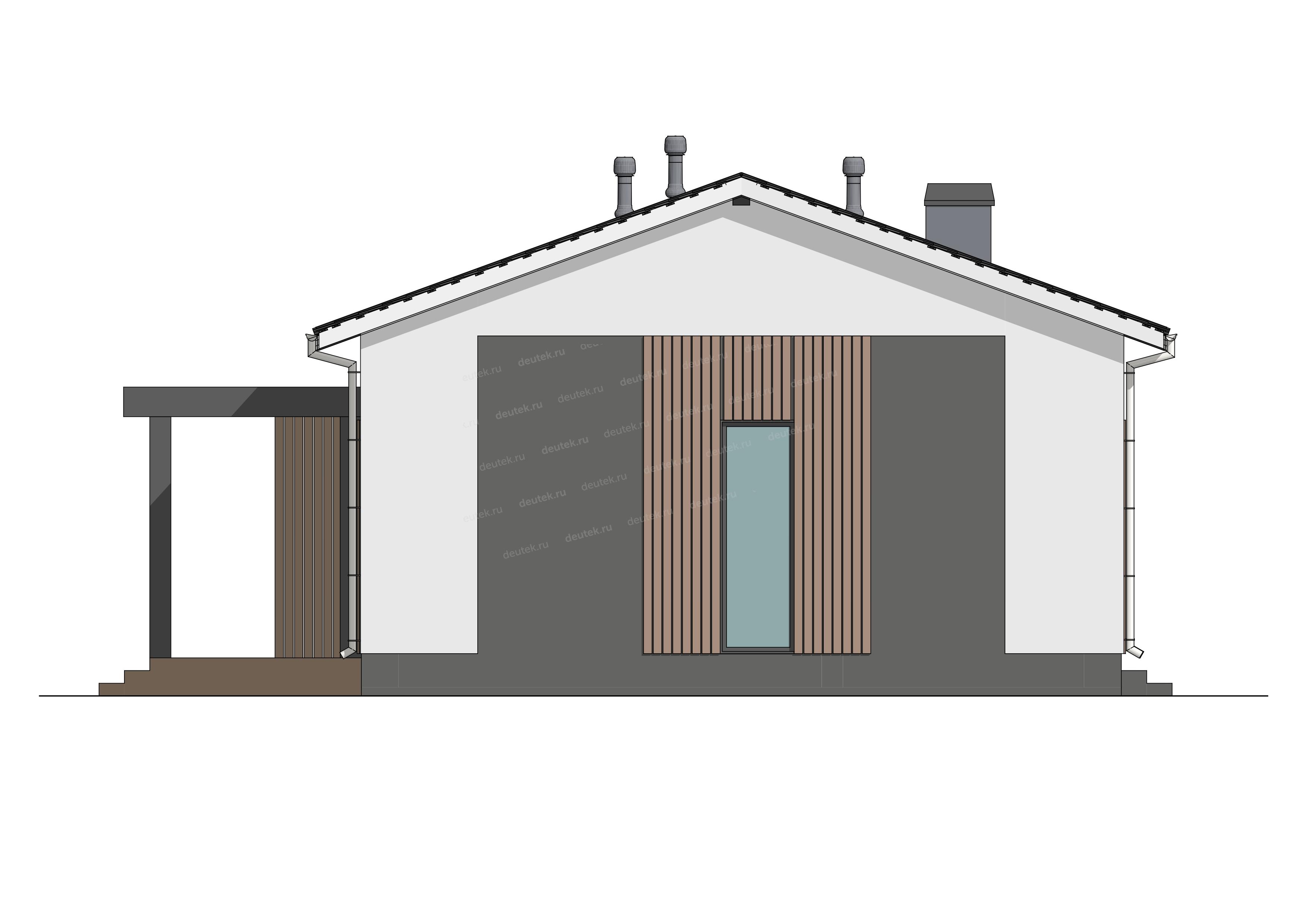 | Фасад: | комбинированный: декоративная штукатурка белый и серый оттенки, планкен; цоколь - декоративный камень |