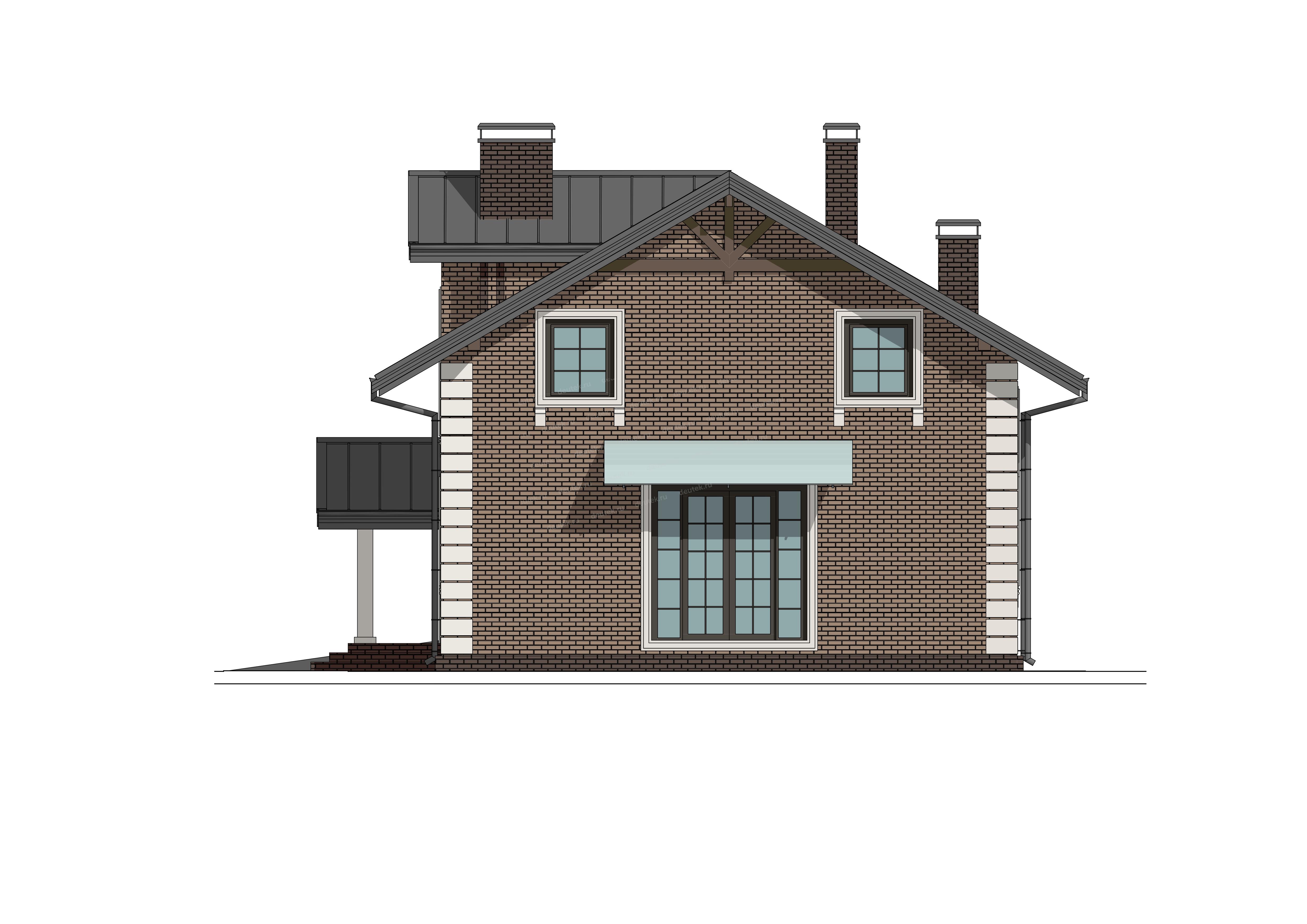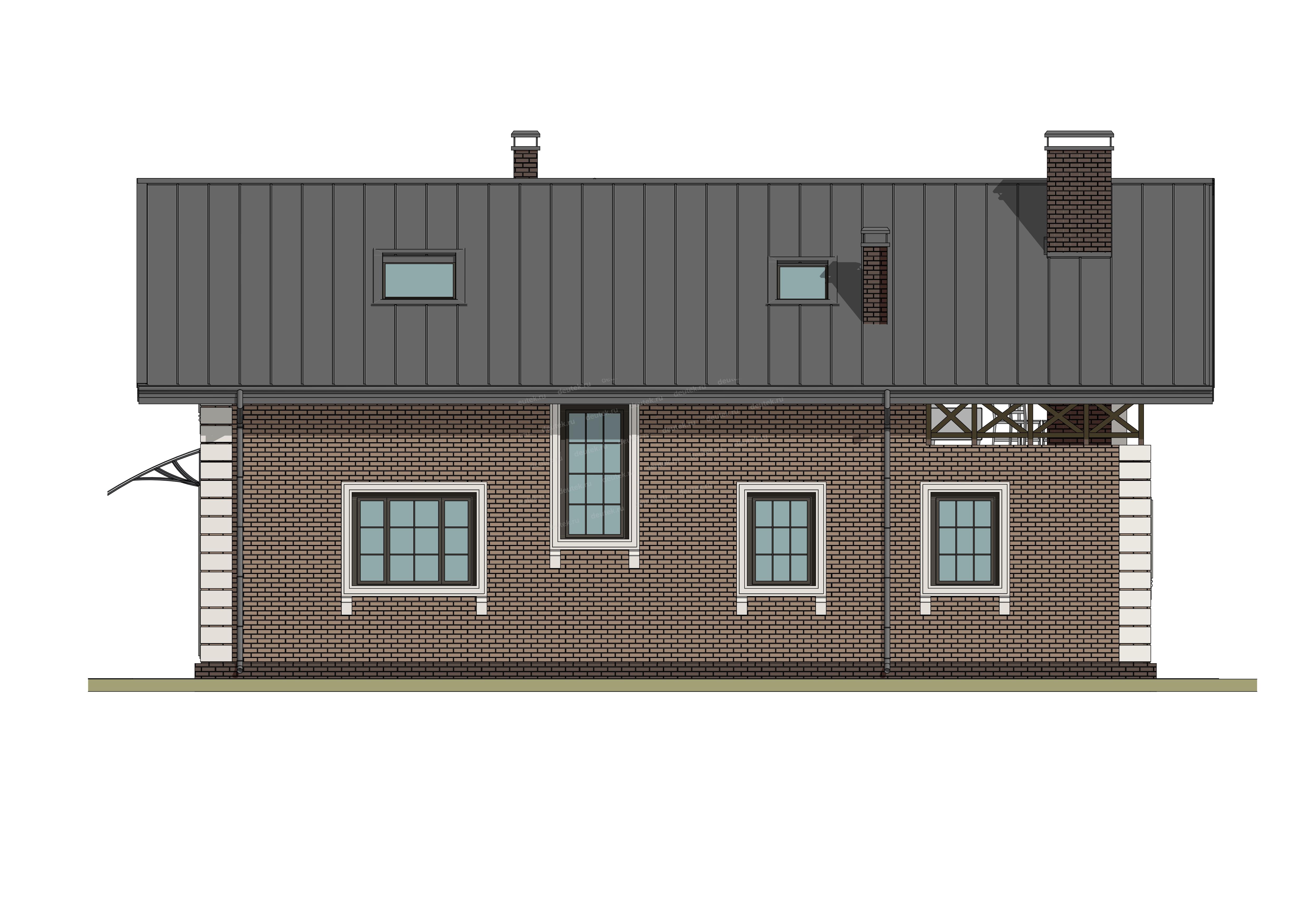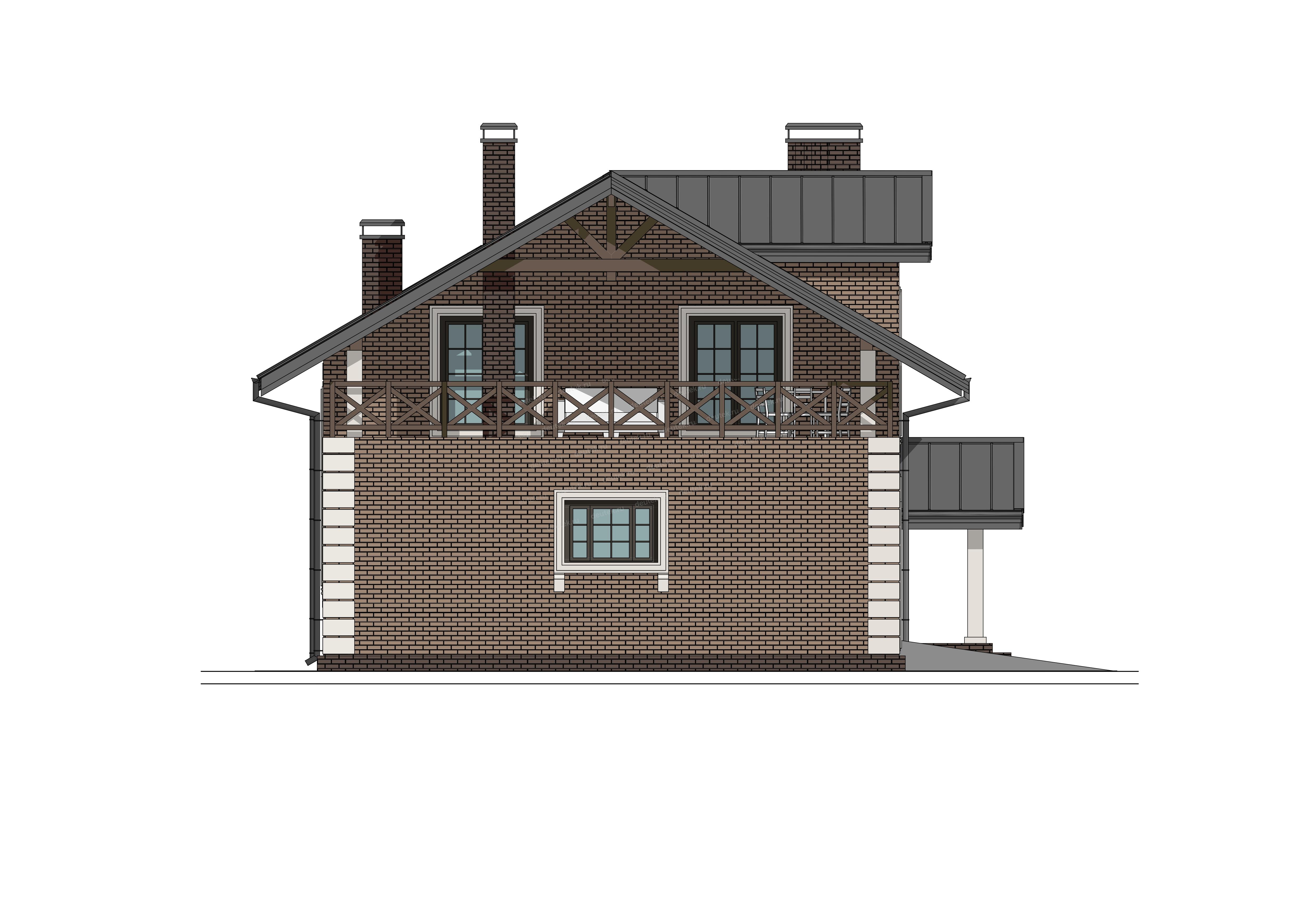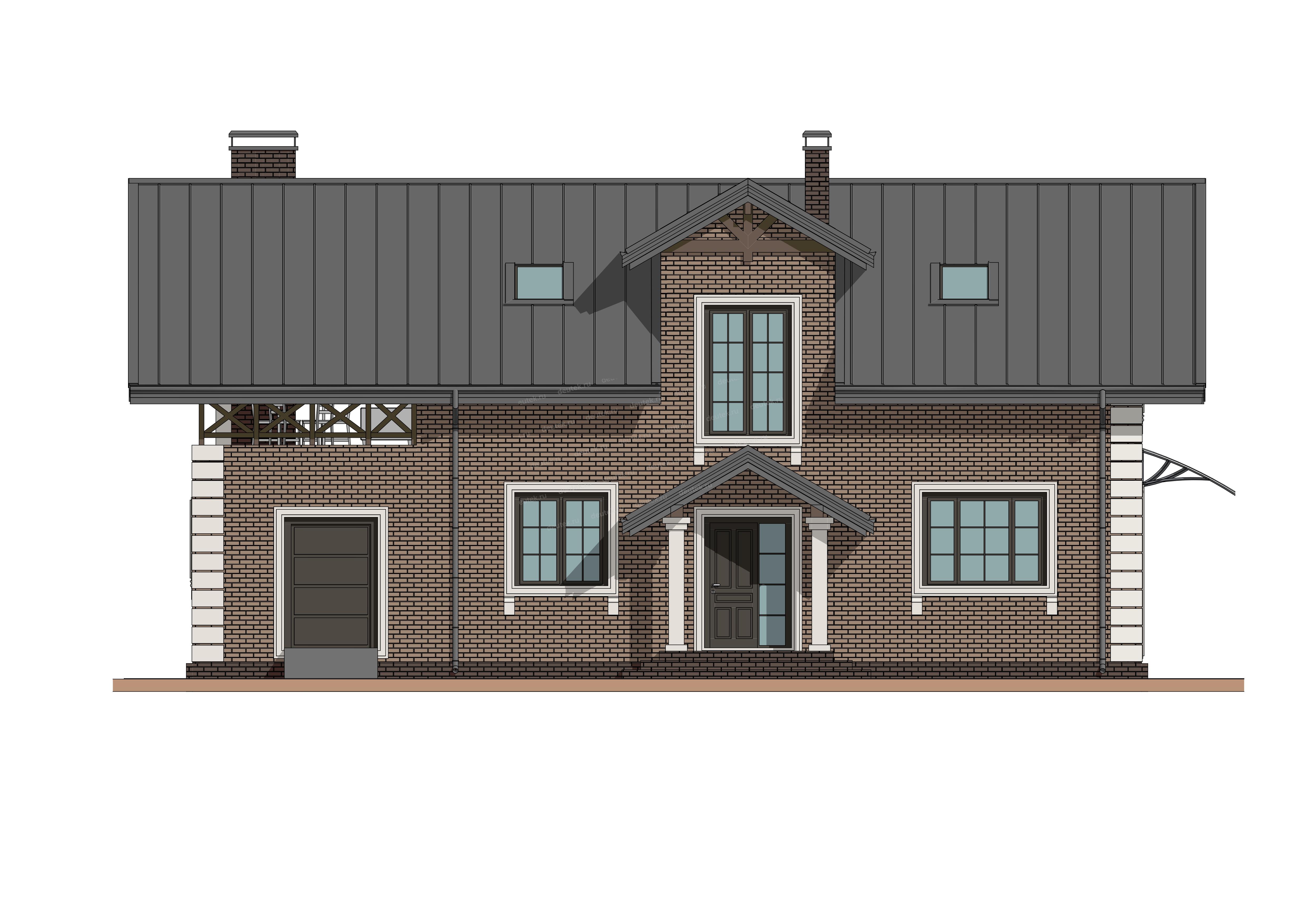 | Фасад: | облицовочный кирпич; цоколь: клинкерная плитка |