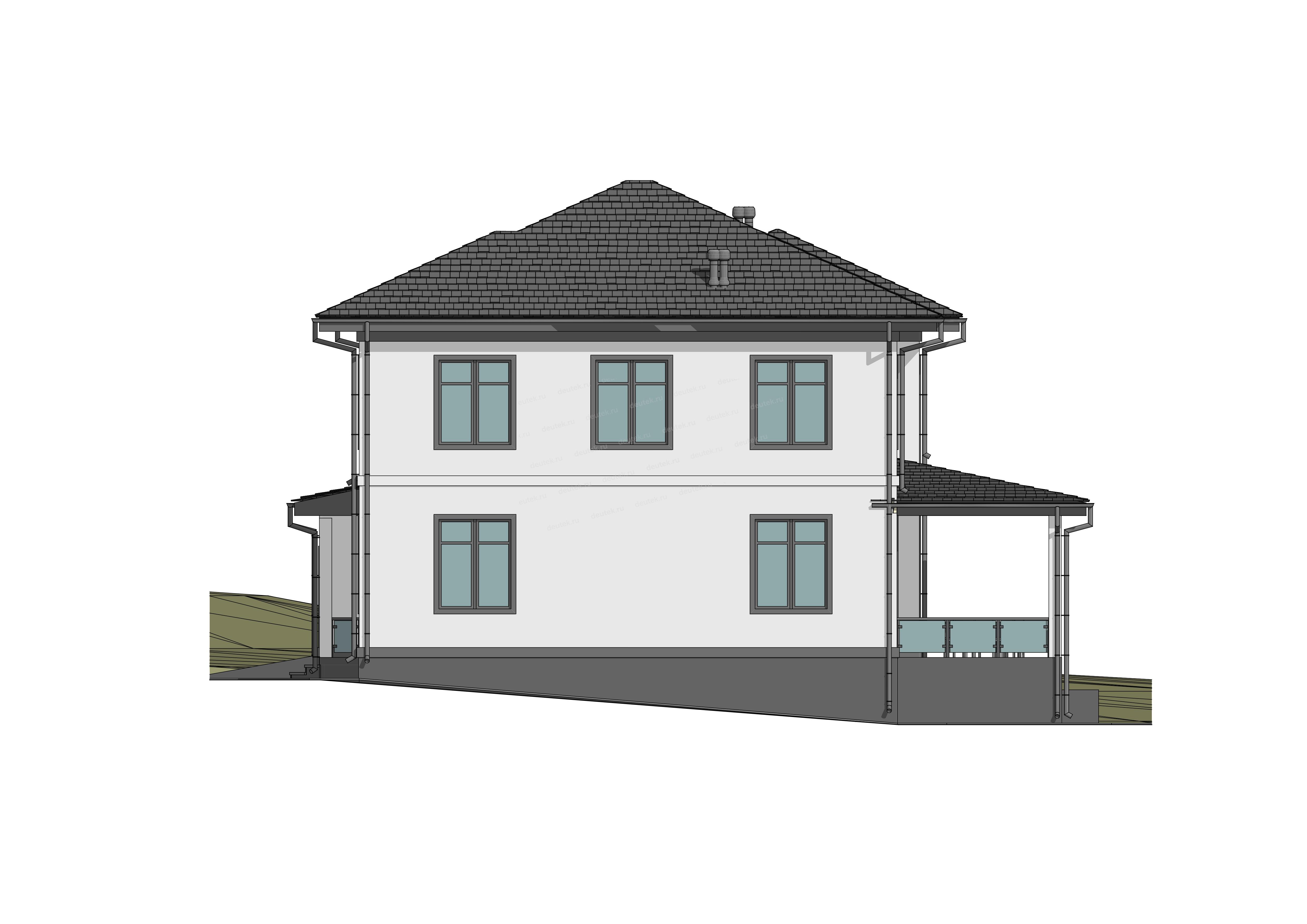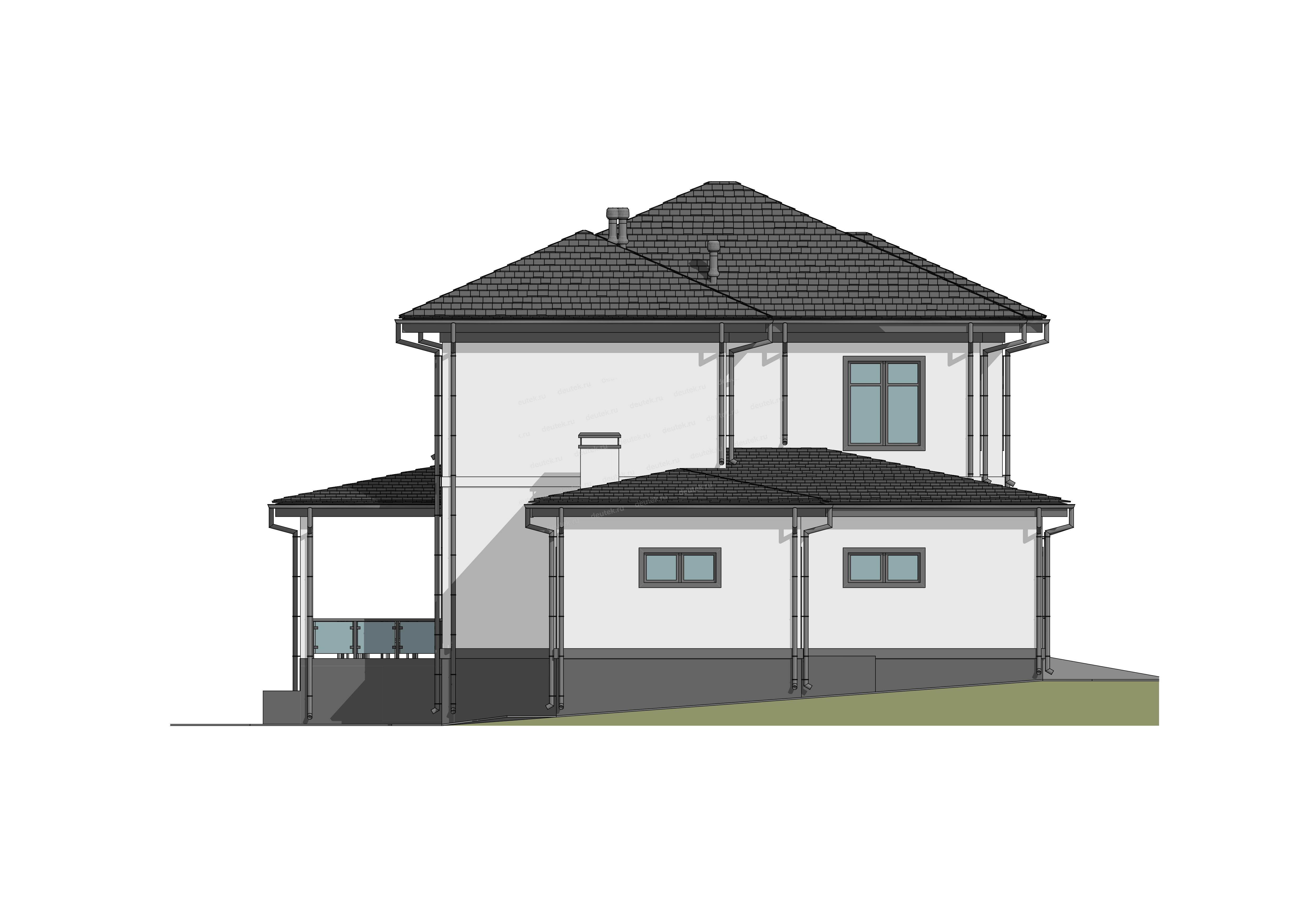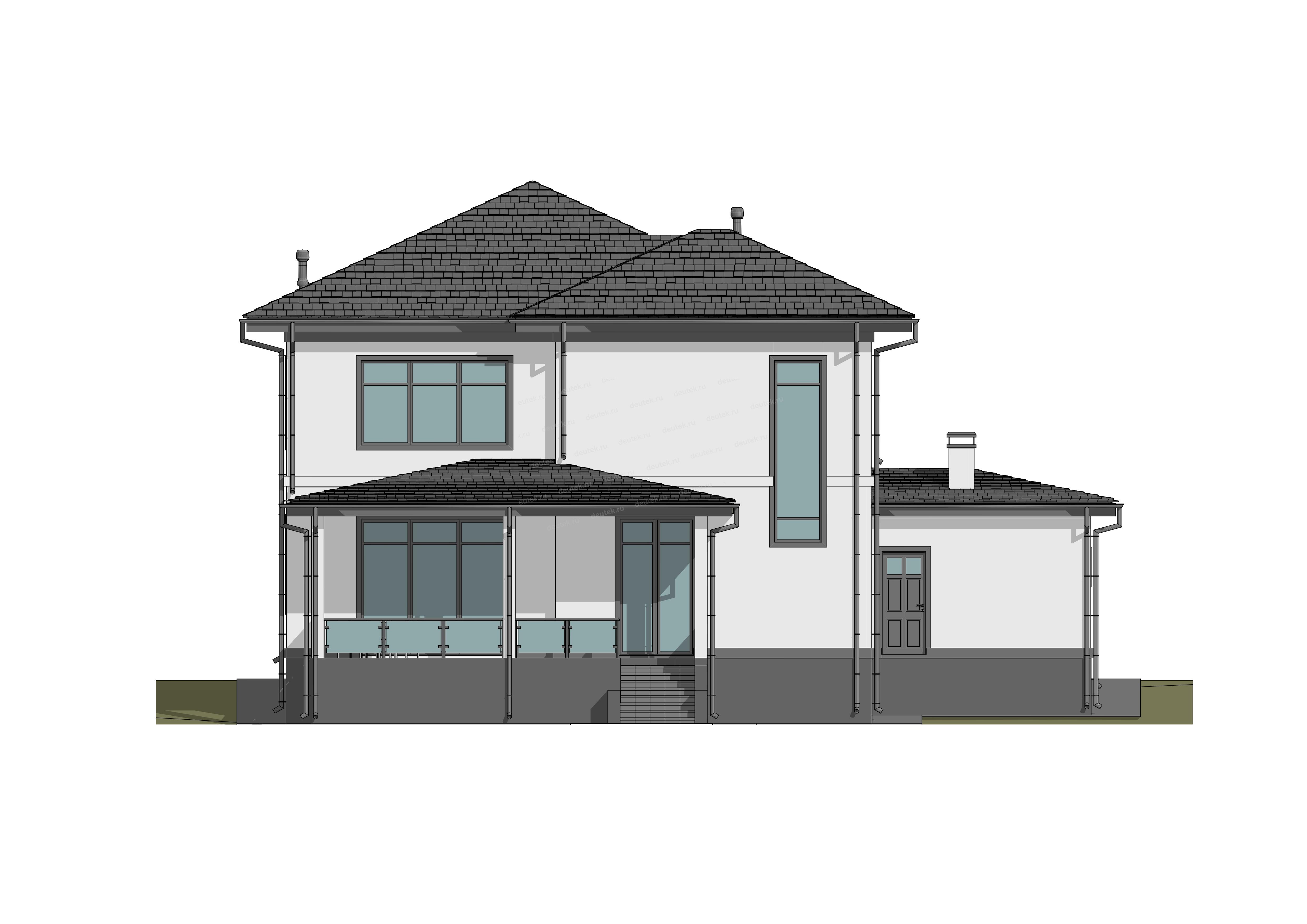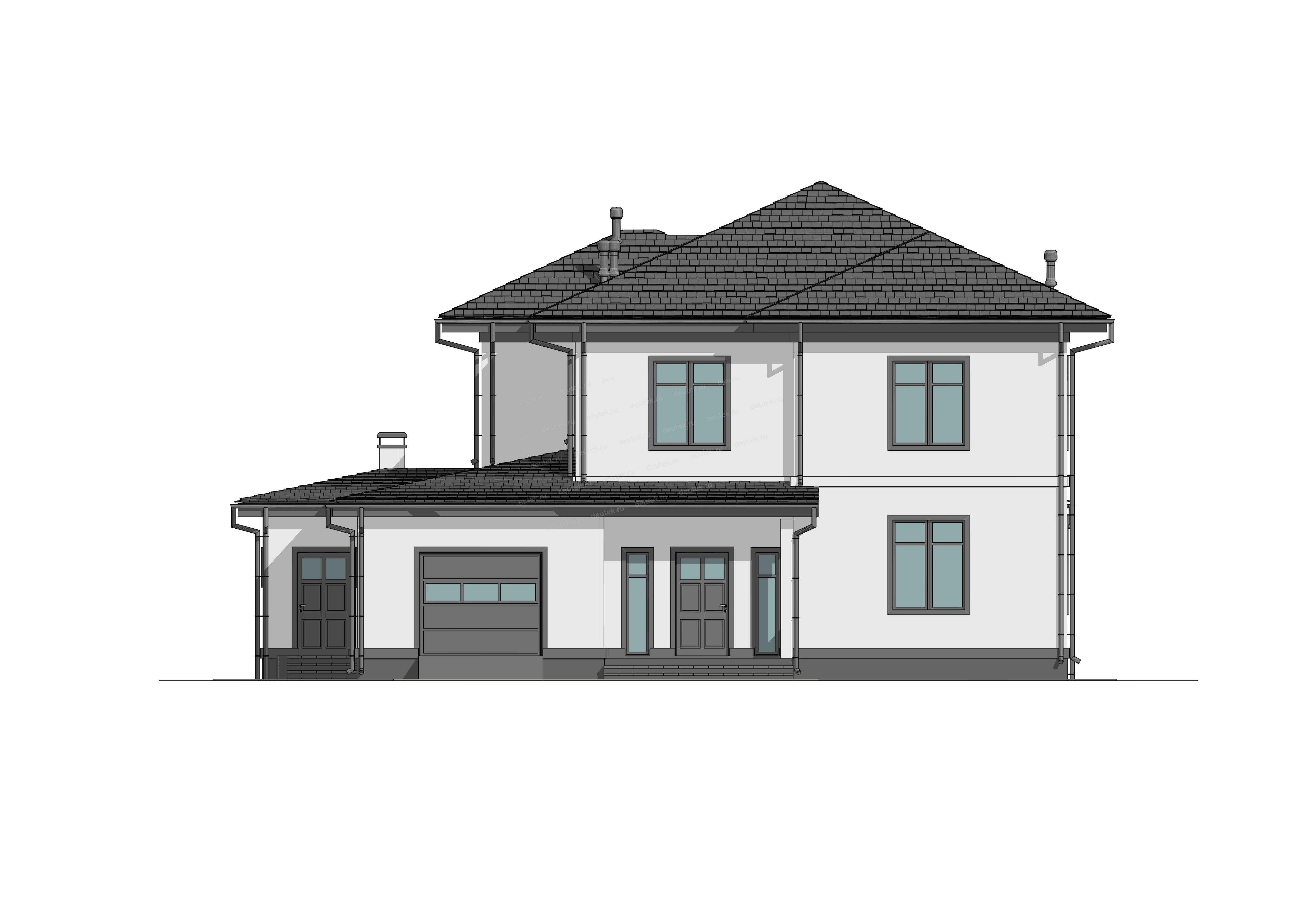 | Фасад: | штукатурка, планкен; цоколь: штукатурка |