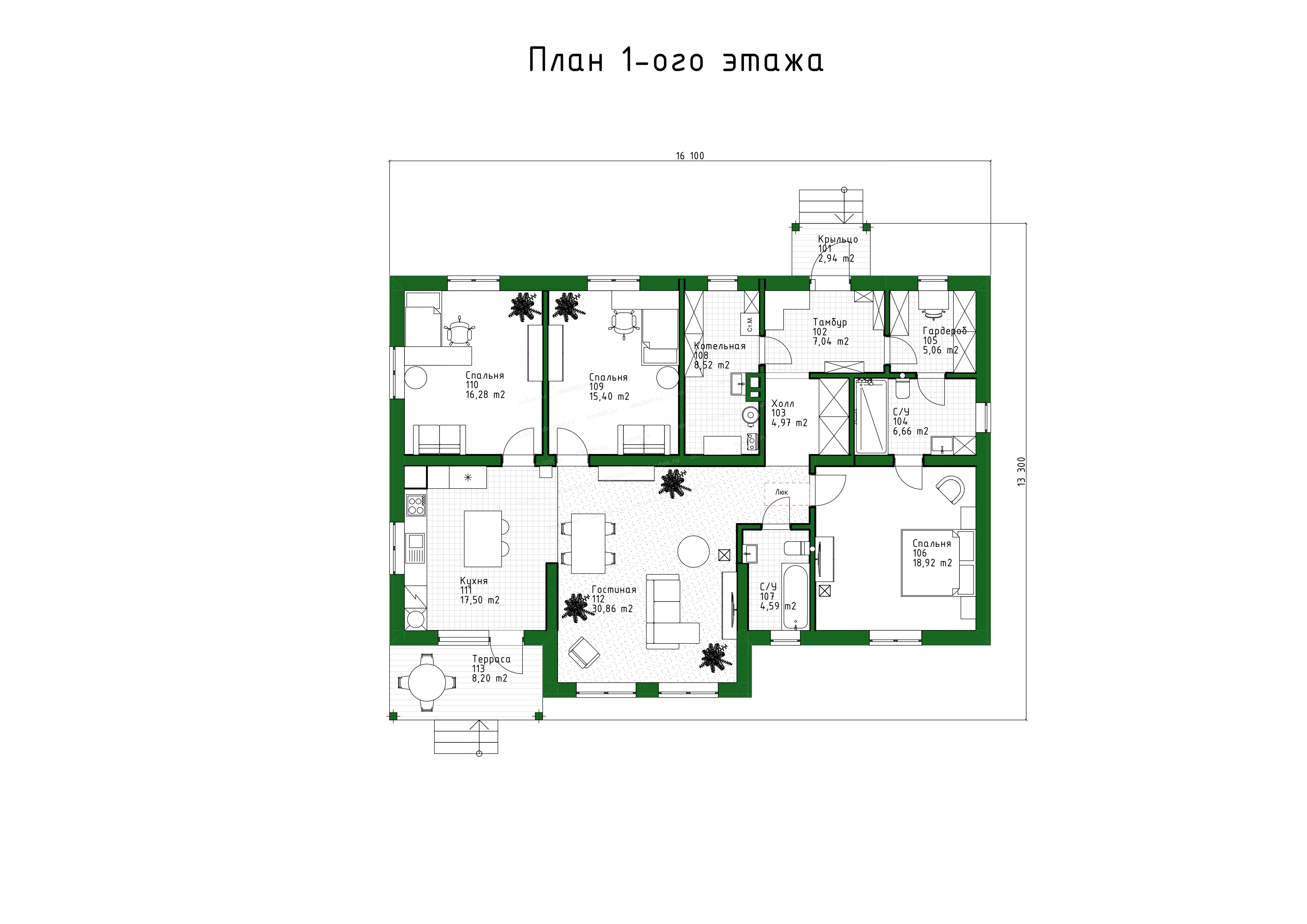 | Фундамент: | монолитная фундаментная плита – 300 мм |