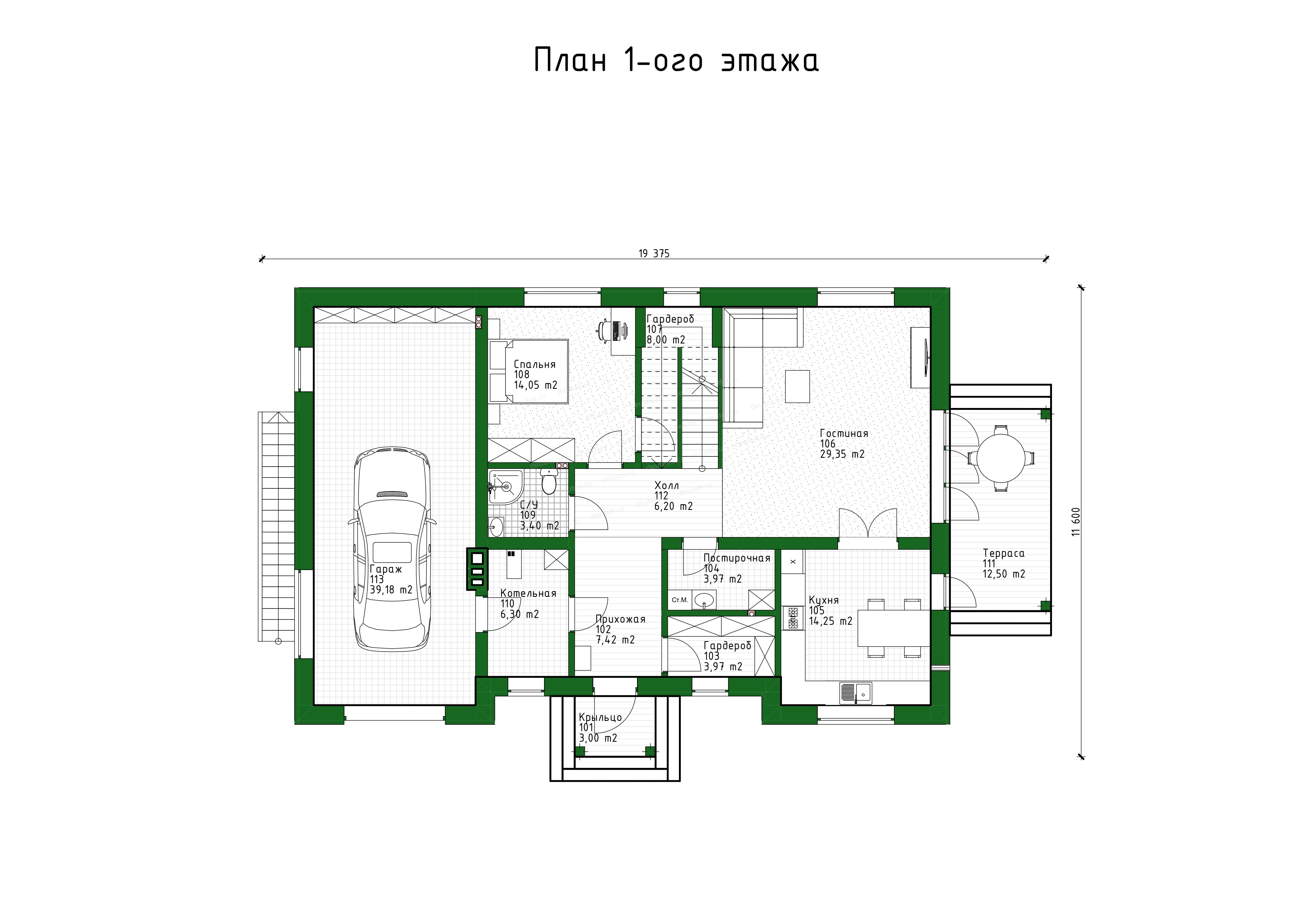 | Материал стен: | газоблок - 375 мм, утеплитель – 100 мм. |