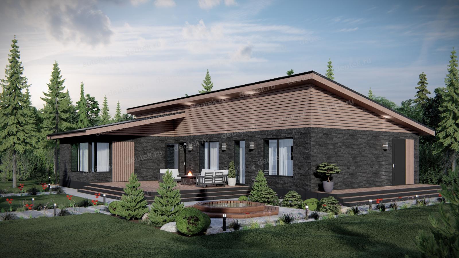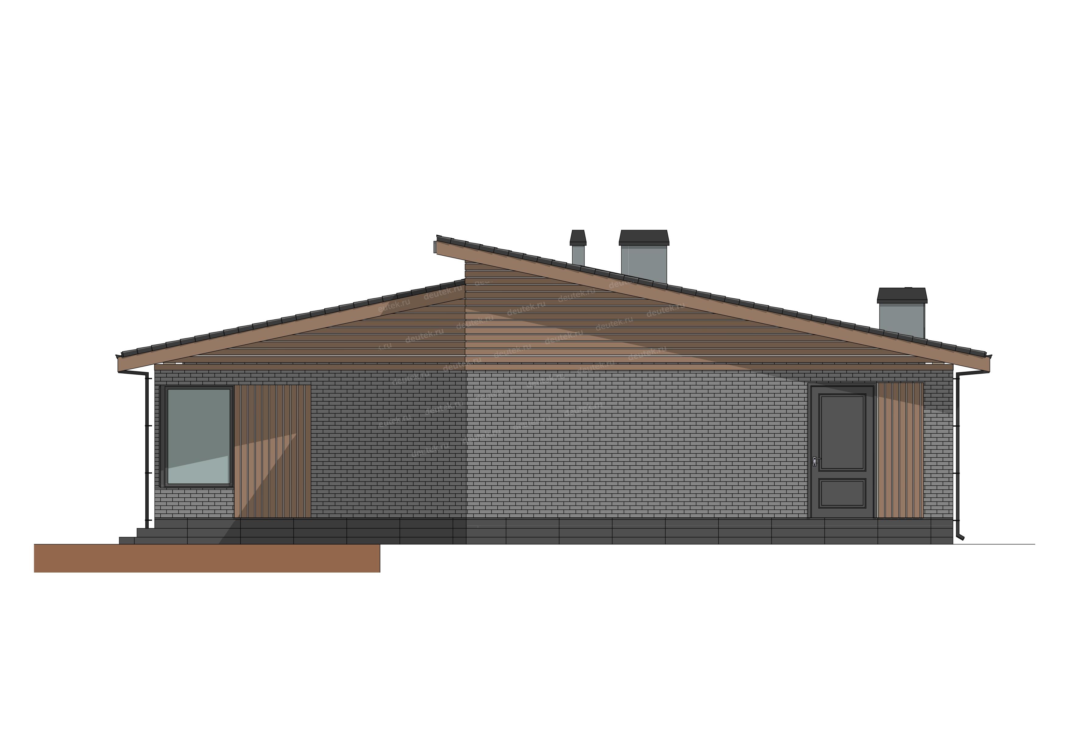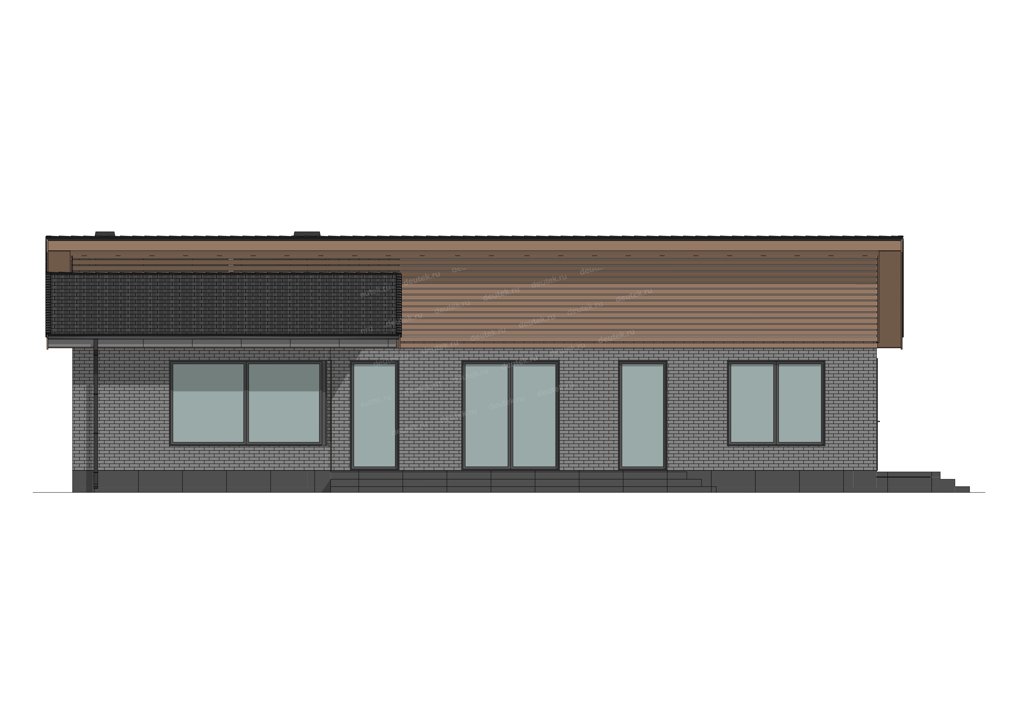 | Фасад: | комбинированный: декоративная штукатурка белый и серый оттенки, планкен; цоколь: декоративный камень |