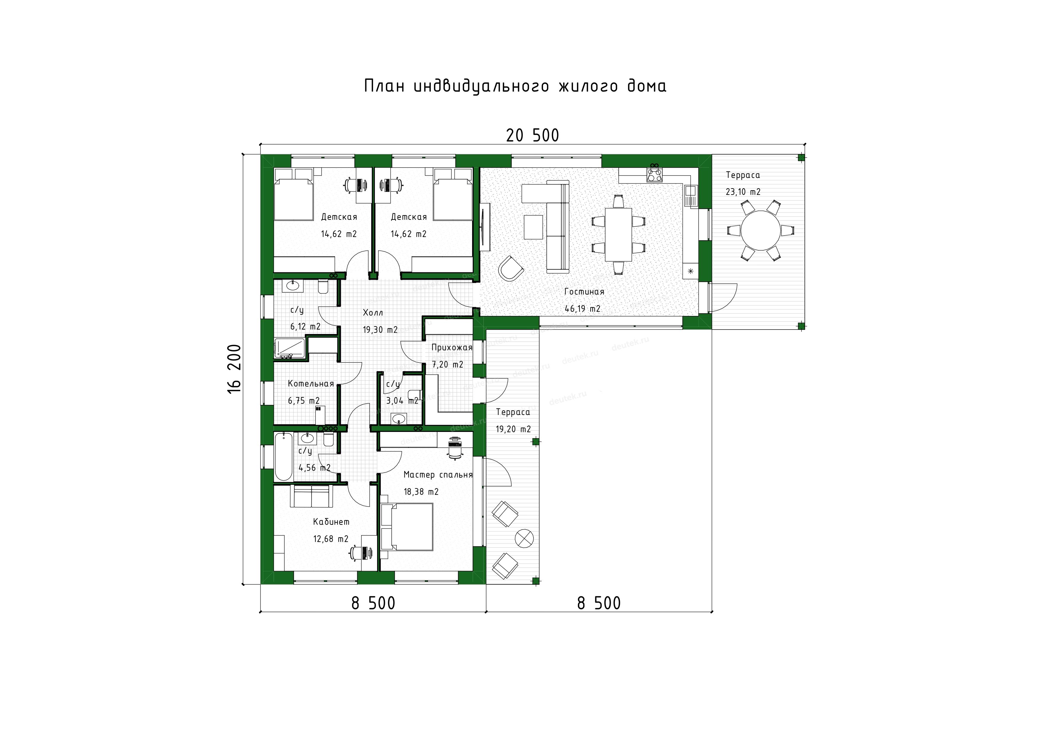 | Материал стен: | газобетонный блок D500 B3,5 - 400 мм. с наружным утеплением минватой-100мм |