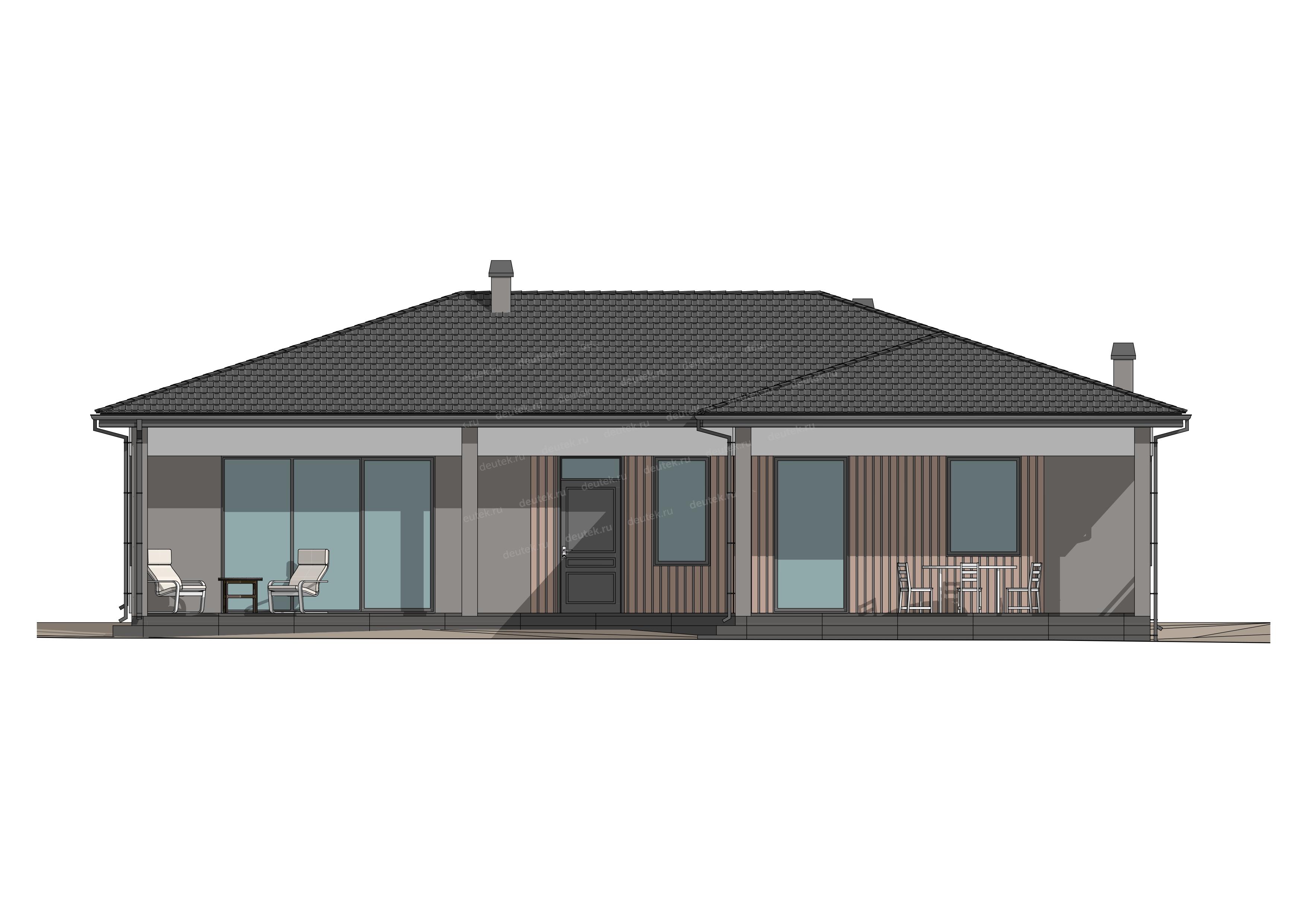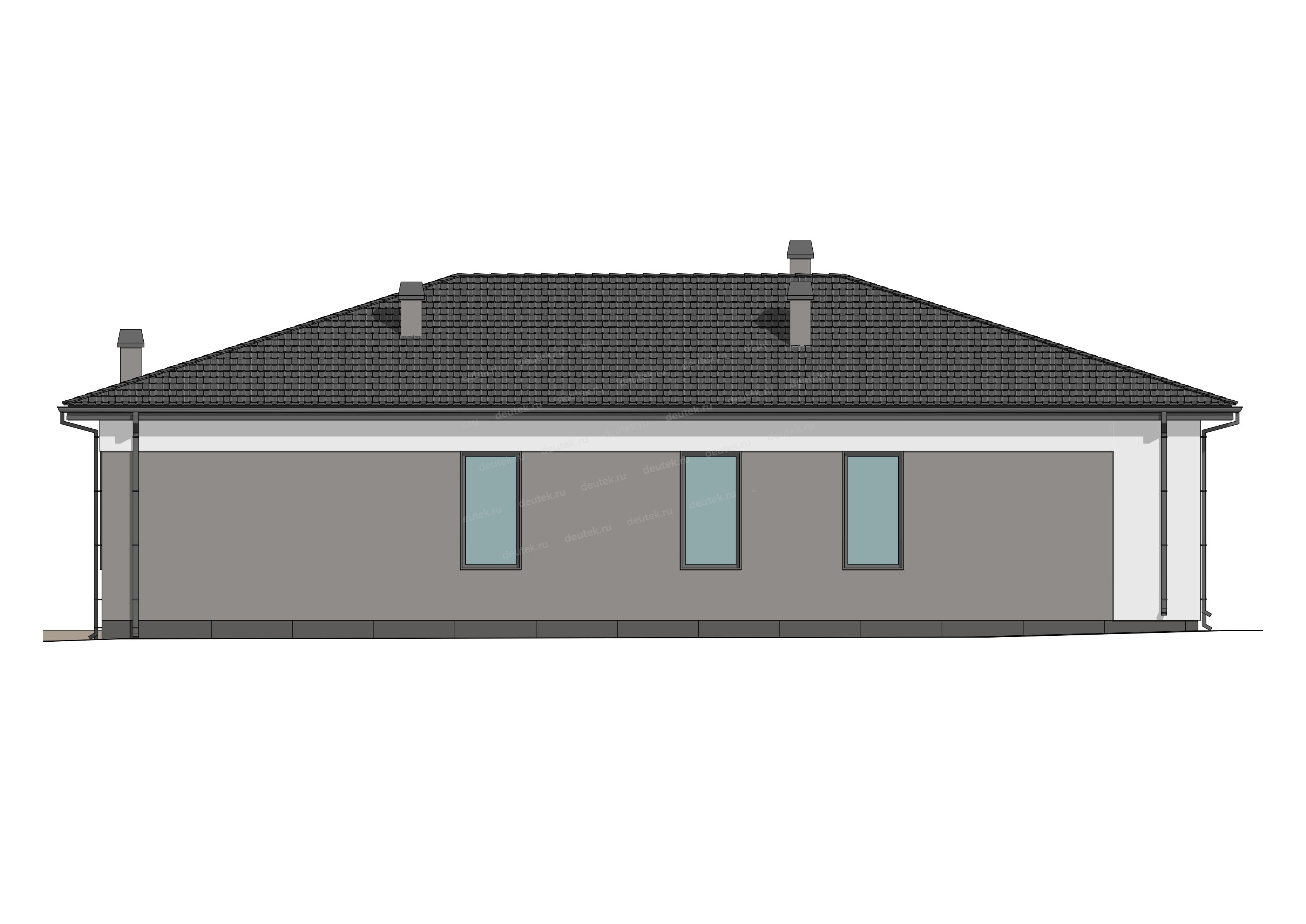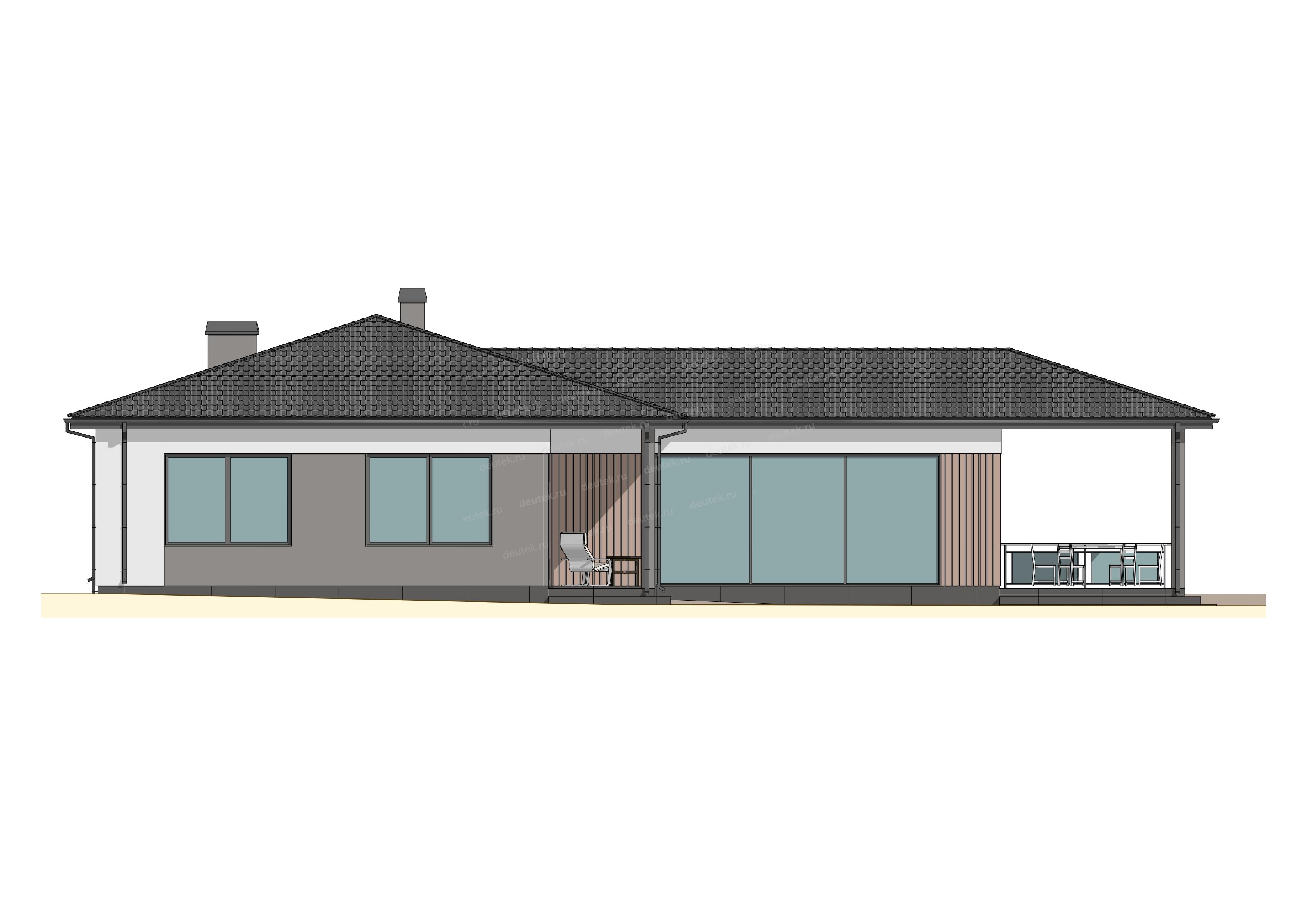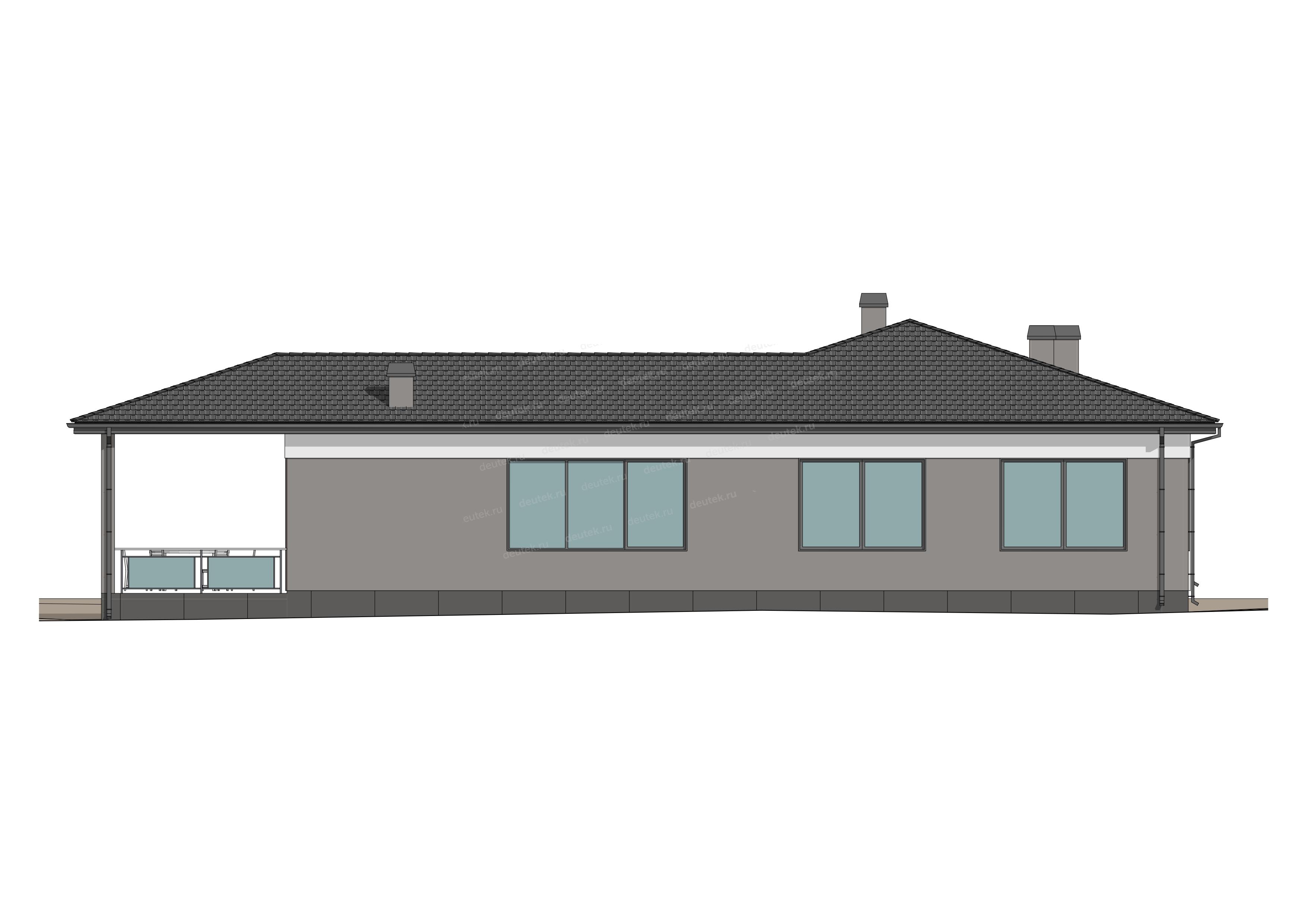 | Фасад: | комбинированная (фасадная штукатурка серый и белый оттенок + планкен), цоколь: клинкерная плитка |