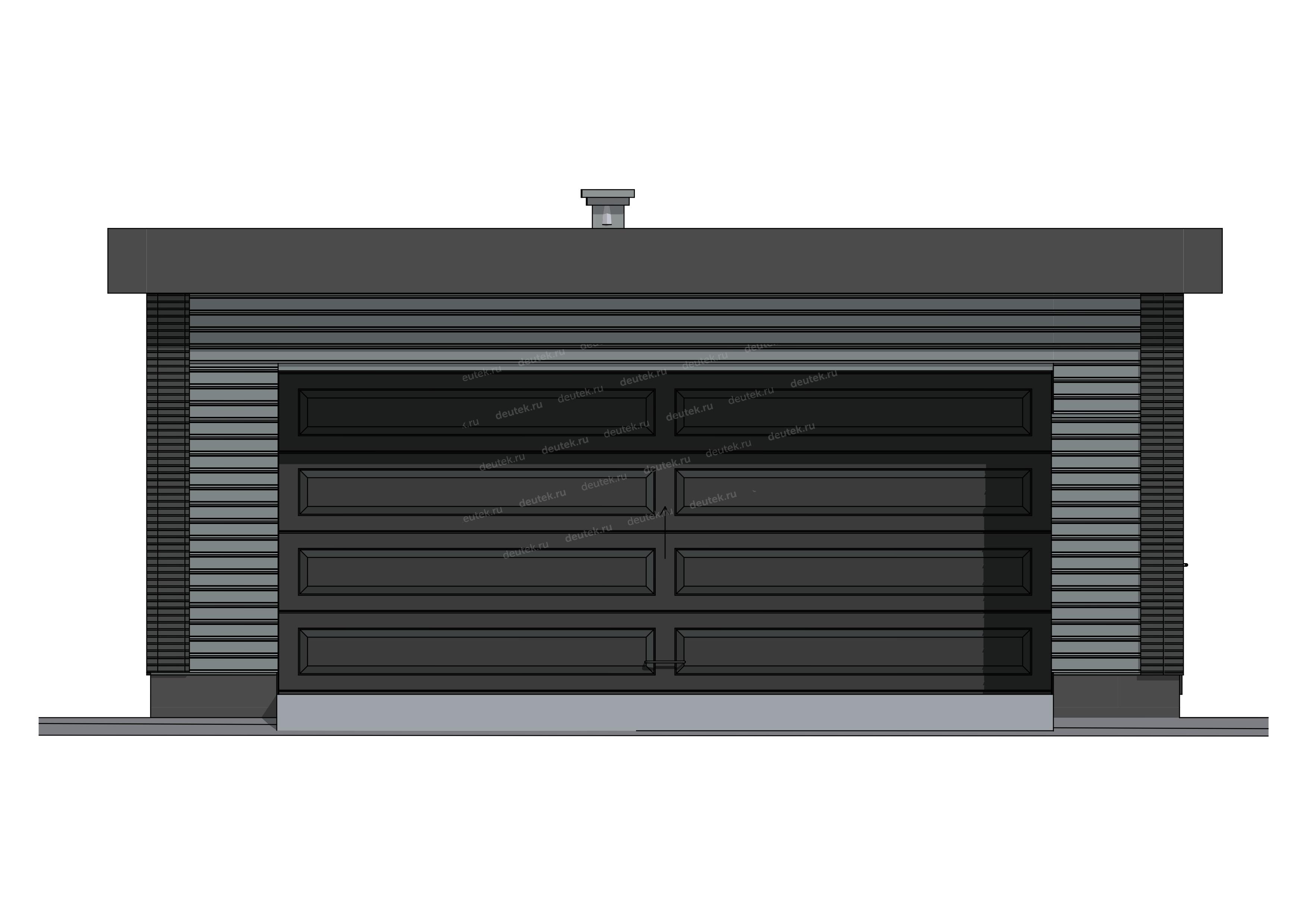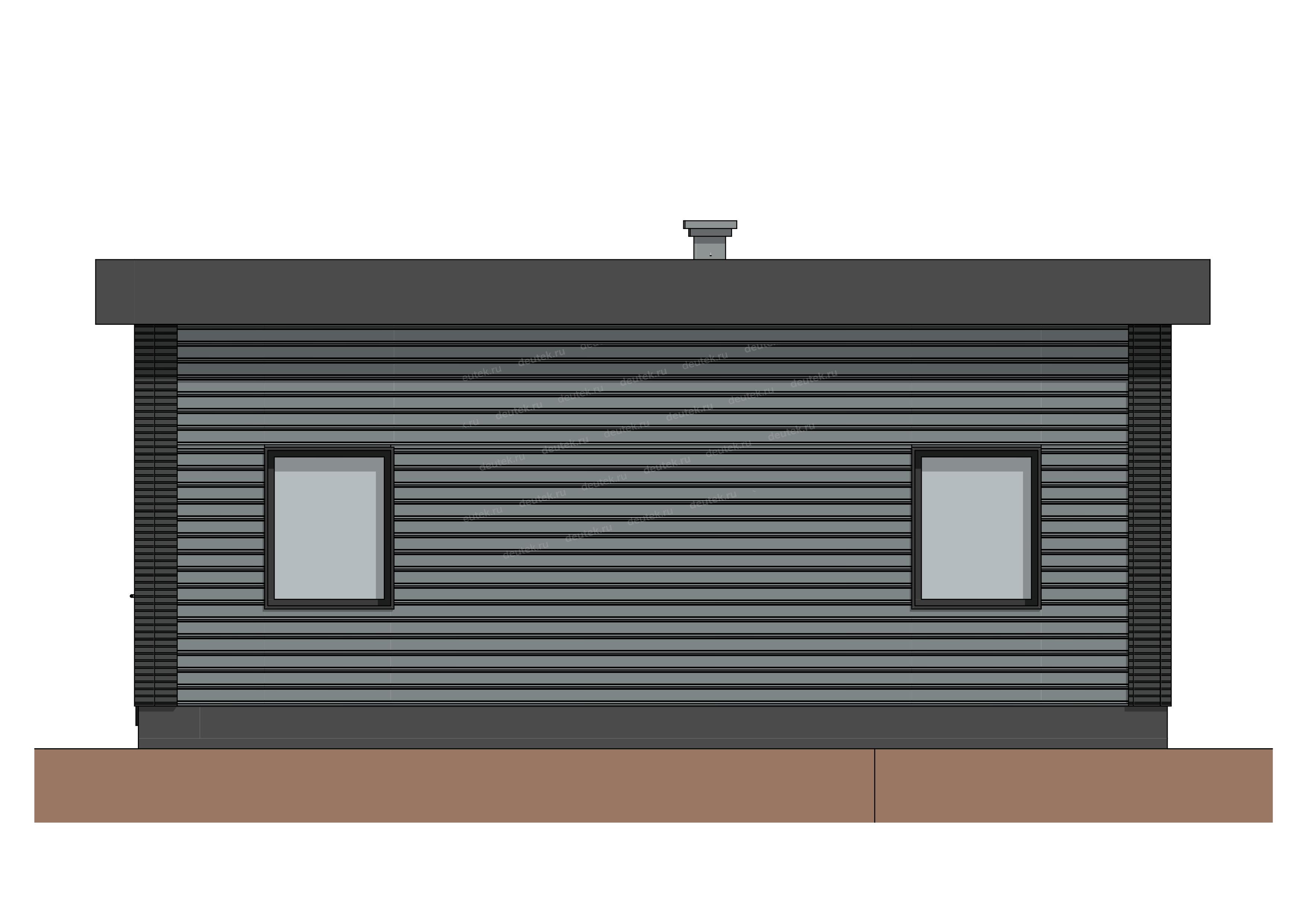 | Фасад: | наружная отделка - комбинированная отделка: планкен темносерый, декоративное обрамление углов рустами из клинкерной плитки, цоколь - клинкерная плитка |