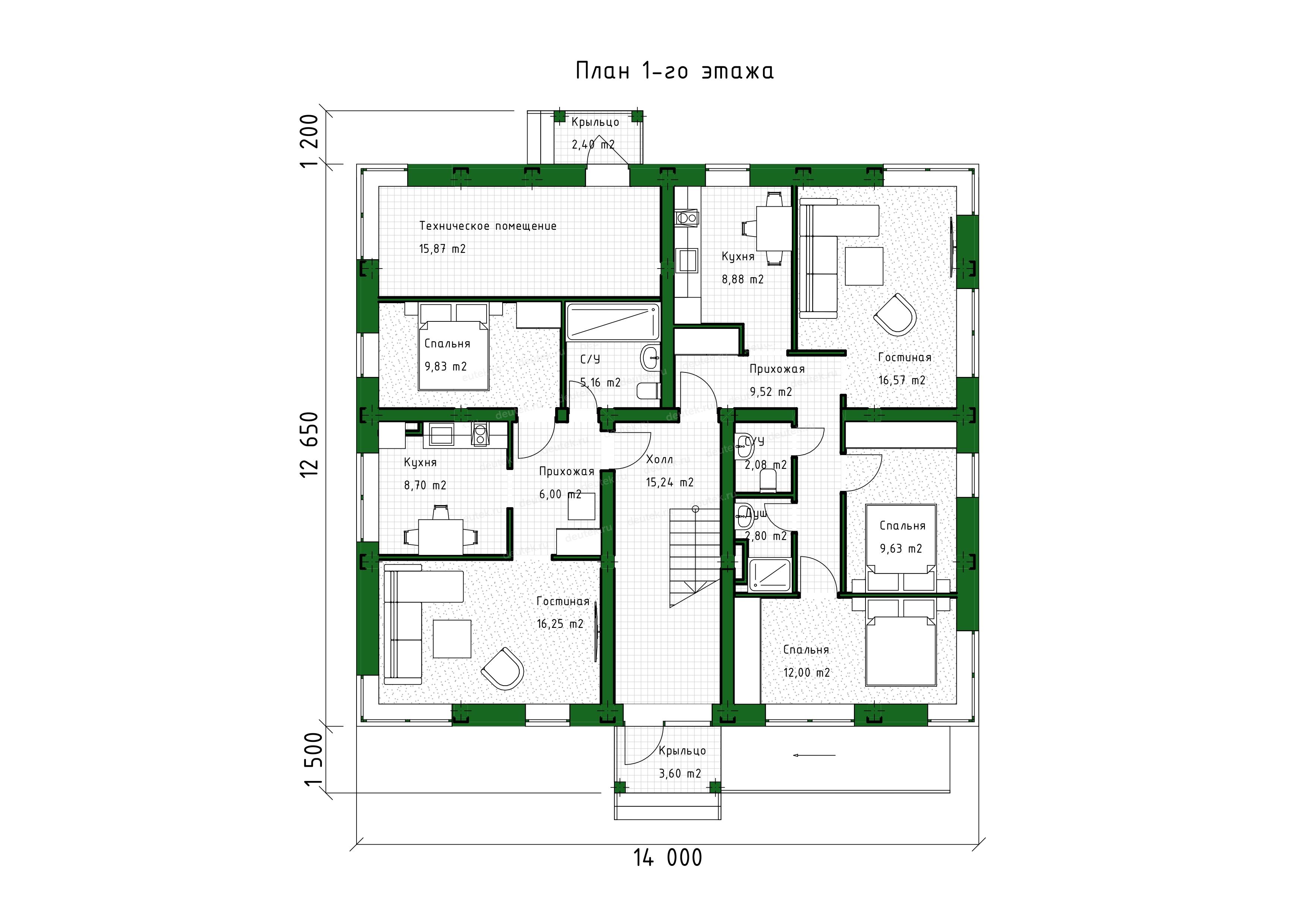 | Габариты дома: | 12.65 x 14.00 м |