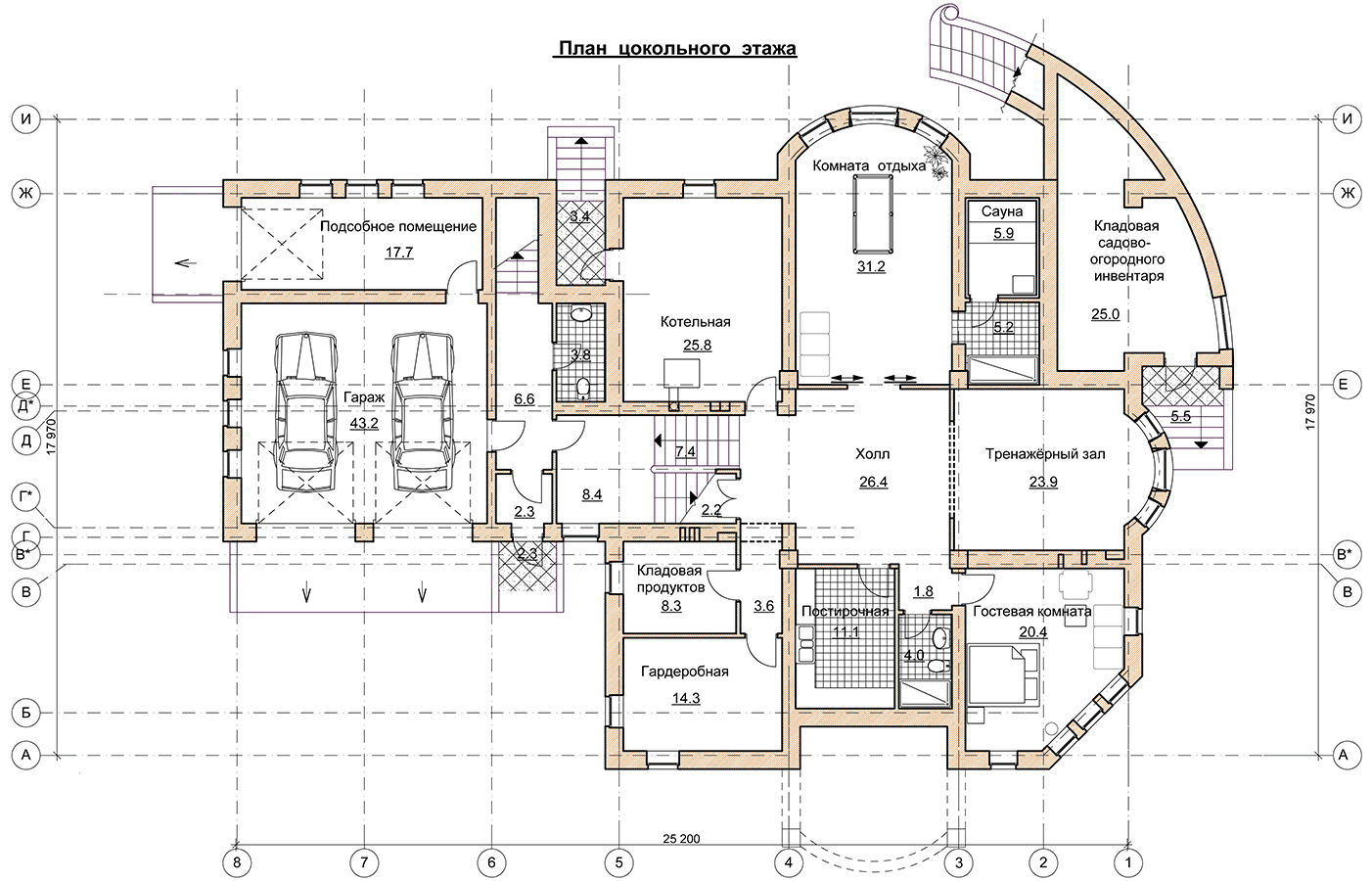 Большая часть наших проектов содержит монолитную плиту, которая является универсальным фундаментом и подходит под большинство типов грунта. Буронабивные сваи с монолитной лентой ростверка являются самым доступным решением, но чтобы реализовать это решение необходимо предоставить отчет геологии, который вы можете заказать у нас или в любой другой компании. Данный тип фундамента иногда не может быть применен к слишком большим и тяжелым домам. Экономия, по сравнению с плитой, достигает до 40%.