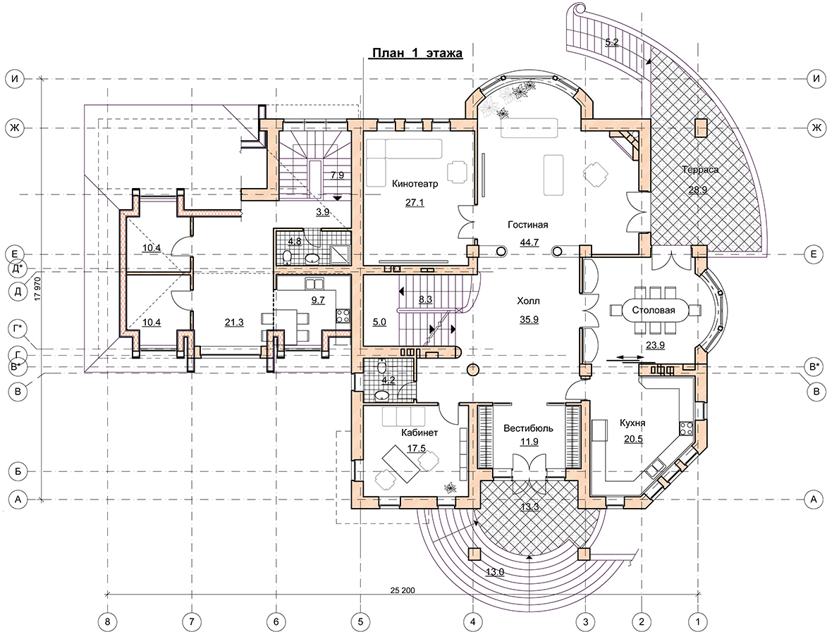 Разделы проекта: АР(архитектурный раздел),КР(конструктивный раздел)
