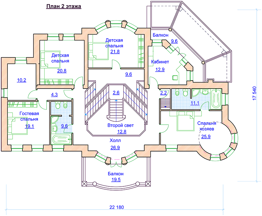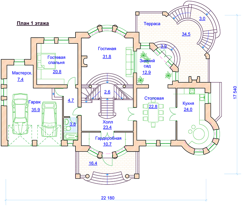 | Габариты дома: | 22.18 x 17.54 м |