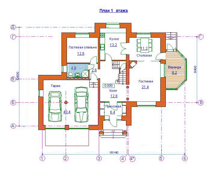 Разделы проекта: АР(архитектурный раздел),КР(конструктивный раздел)