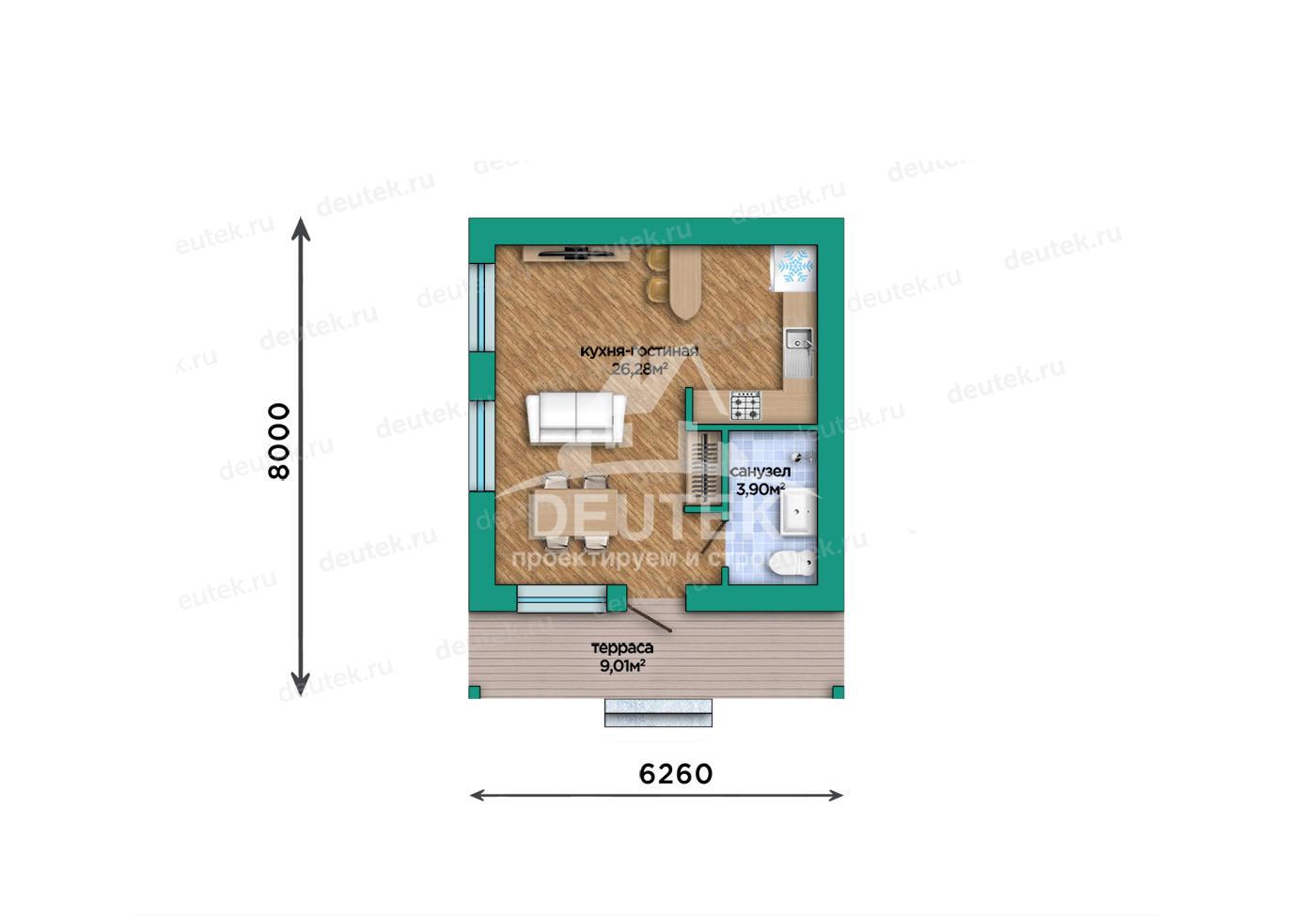 Габариты дома: 8.00 x 6.26 м