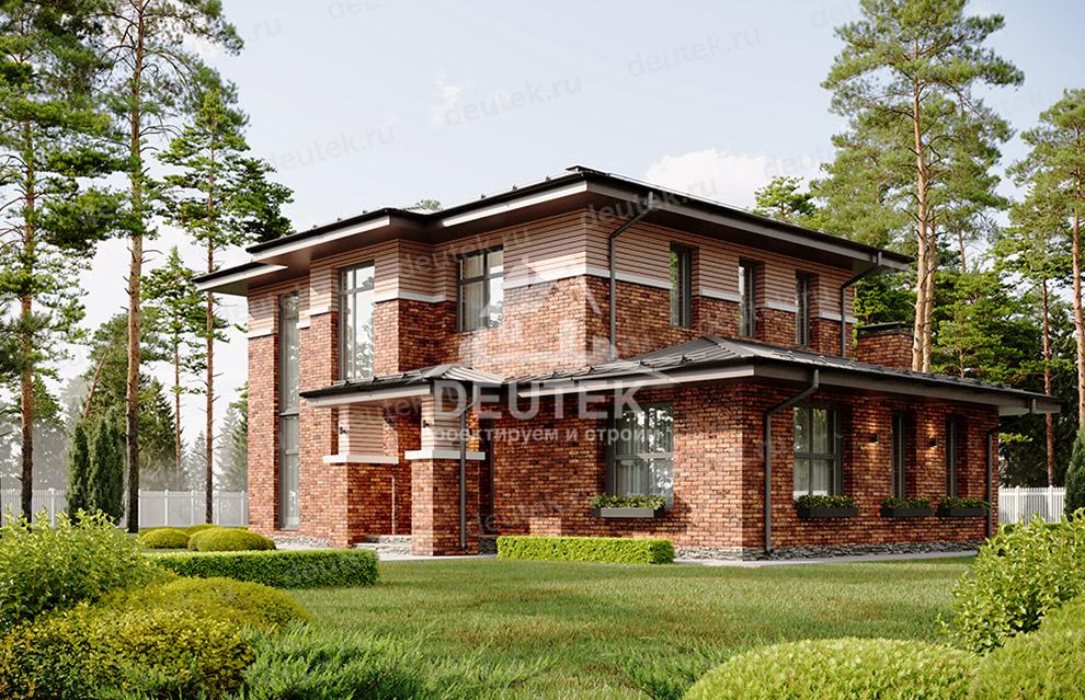 Проект узкого двухэтажного дома с большими окнами и тренажерным залом - LK-327