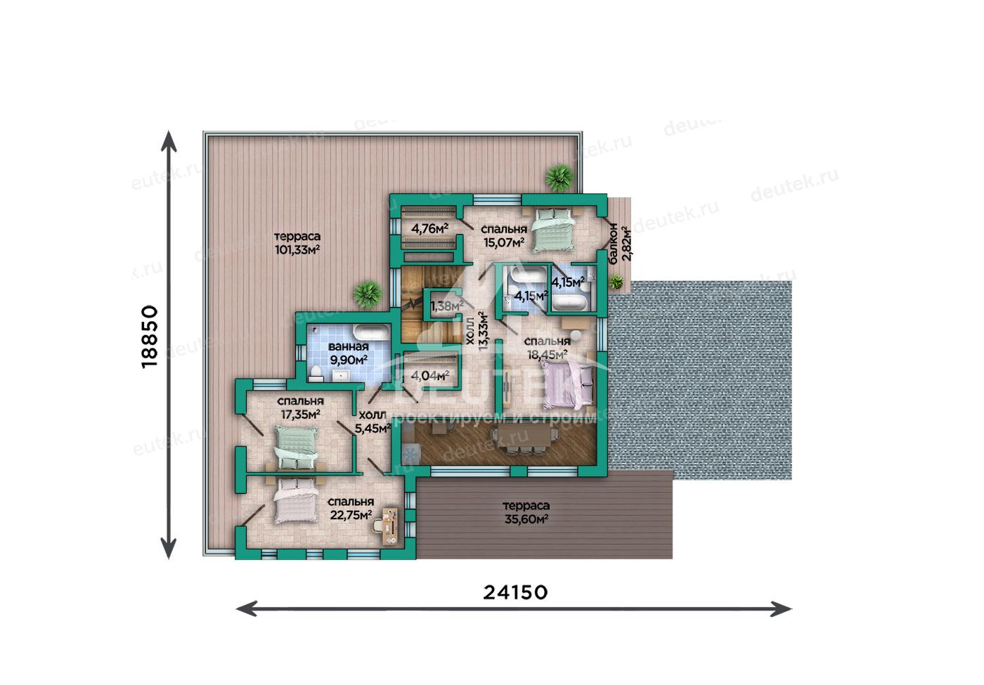 Габариты дома: 24.15 x 18.85 м